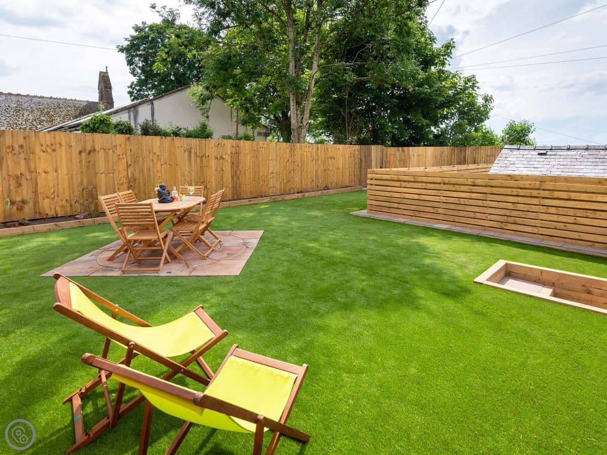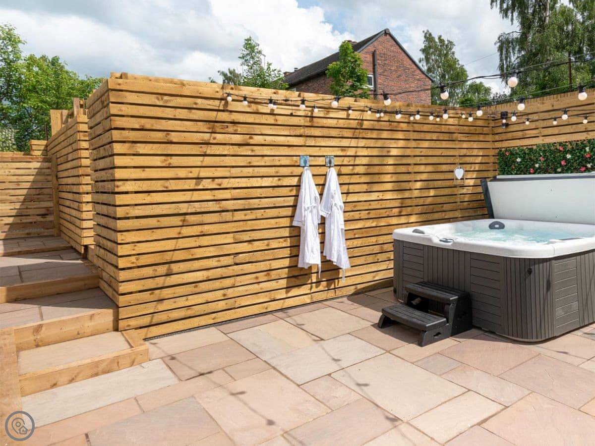 Outside, there's an enclosed garden that's just for you. It's private. And there's a hot tub.