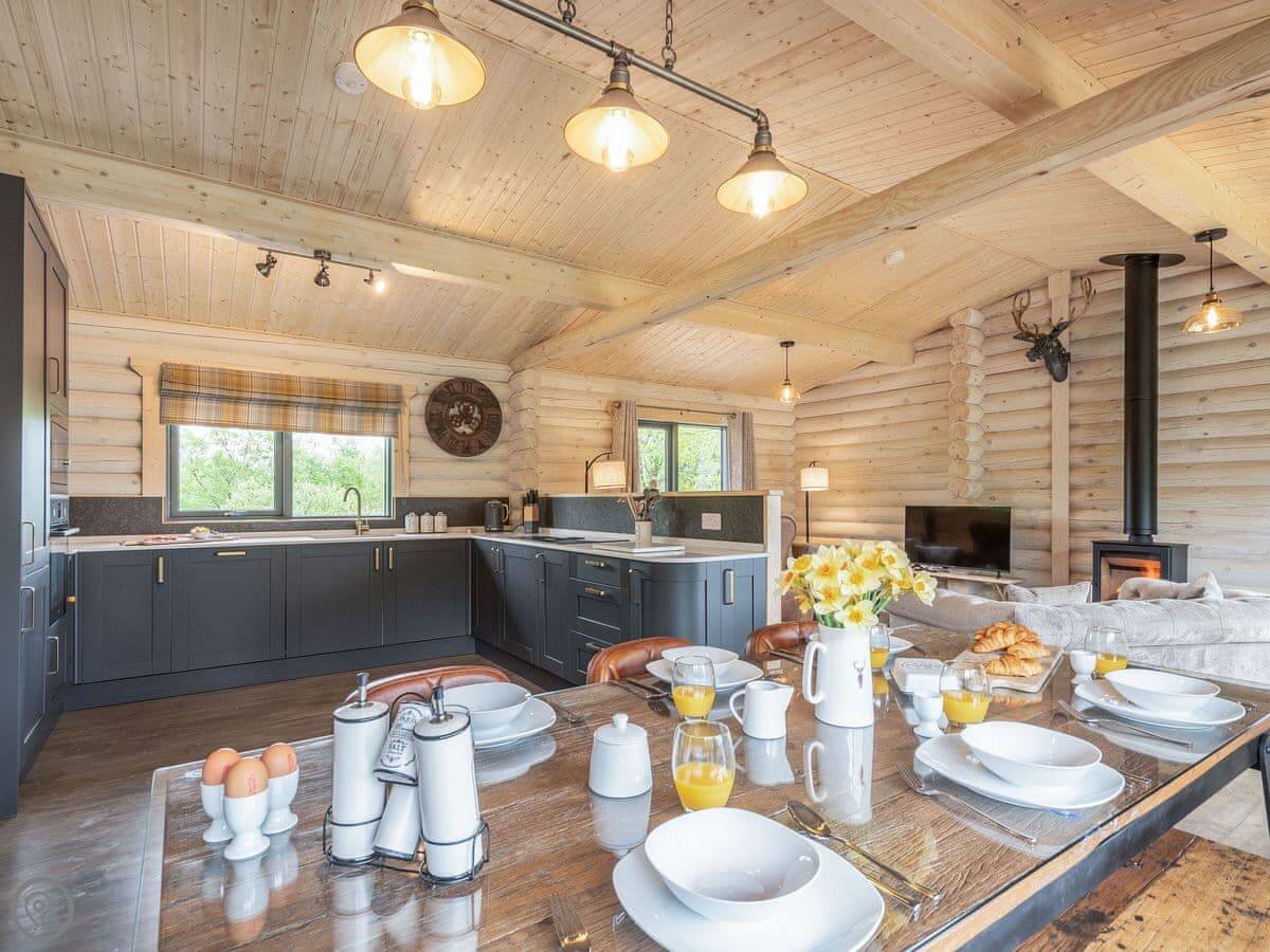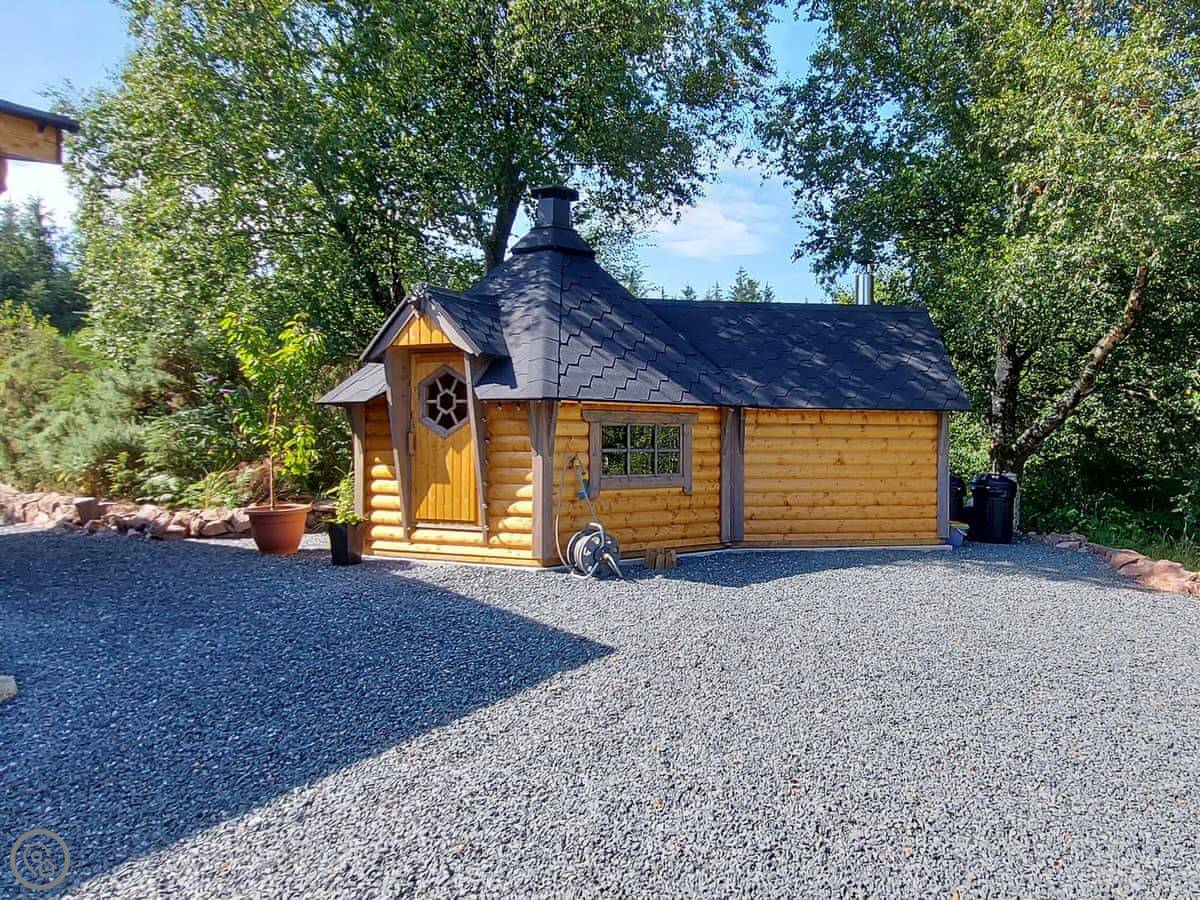 This is Treetops. It's a log cabin near Kippford, in the part of Scotland just north of the border. It's new, built in 2022, so everything works and feels fresh.