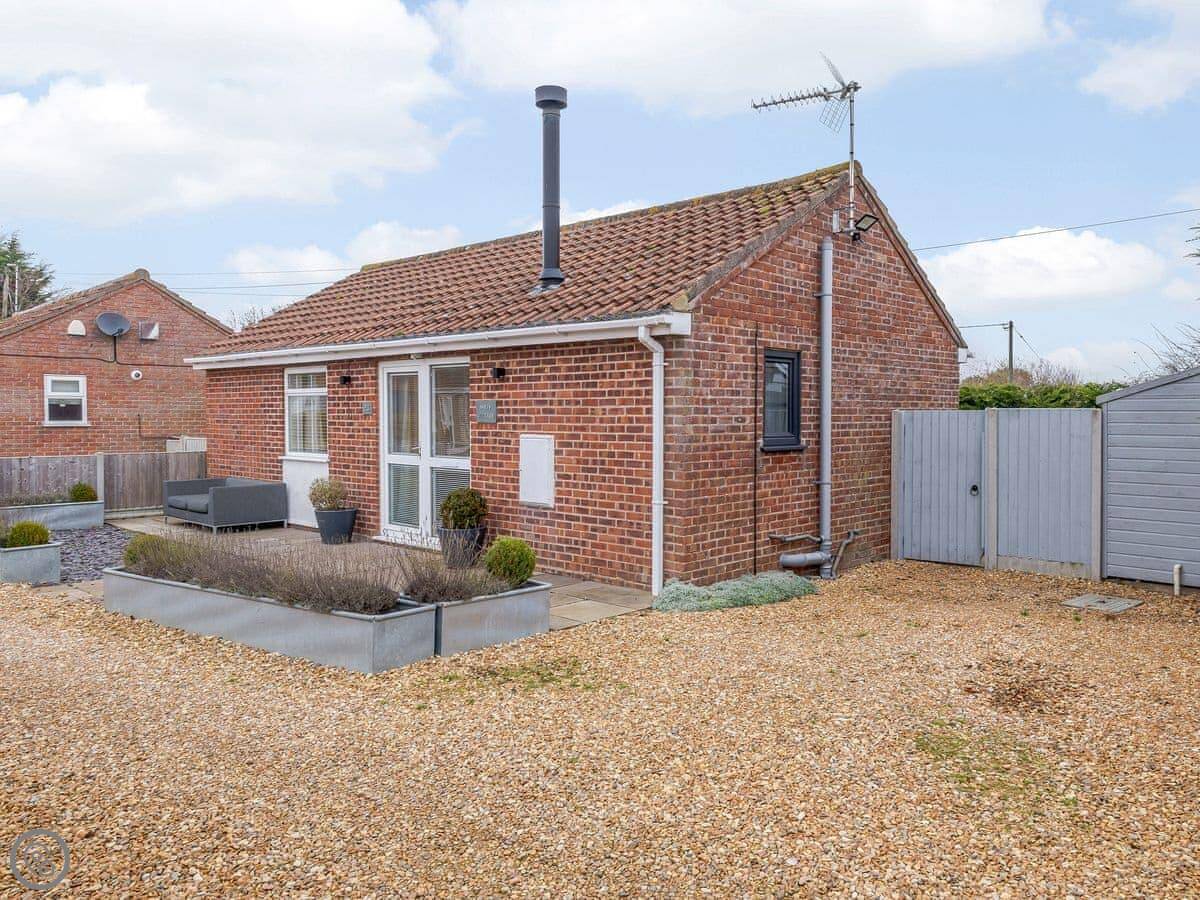 Sands Cottage is in Shepherd's Port, Norfolk. It's a detached bungalow, so everything's on the ground floor. Good if you don't want stairs. The garden is fully enclosed and private.