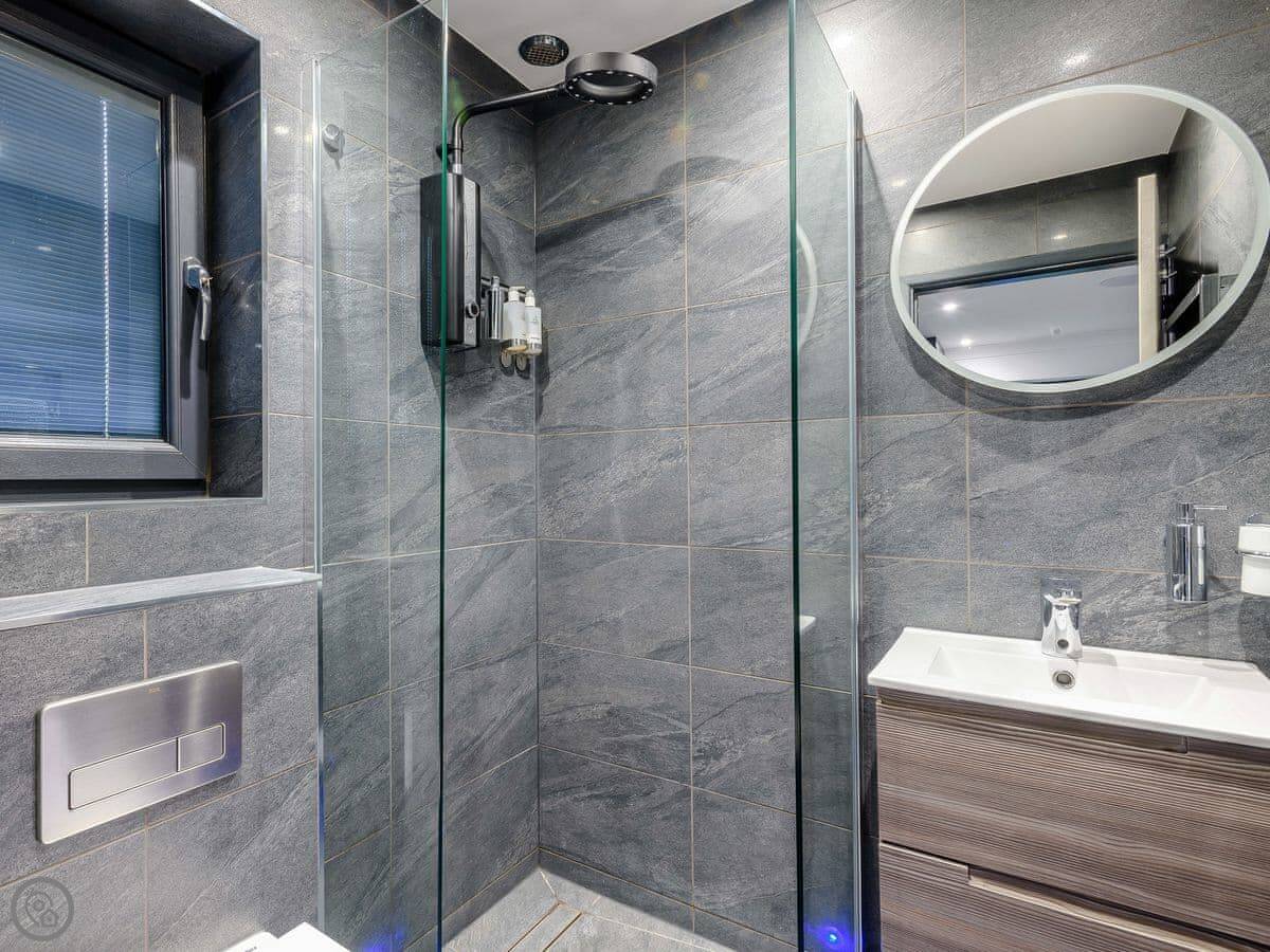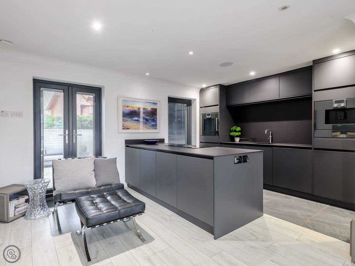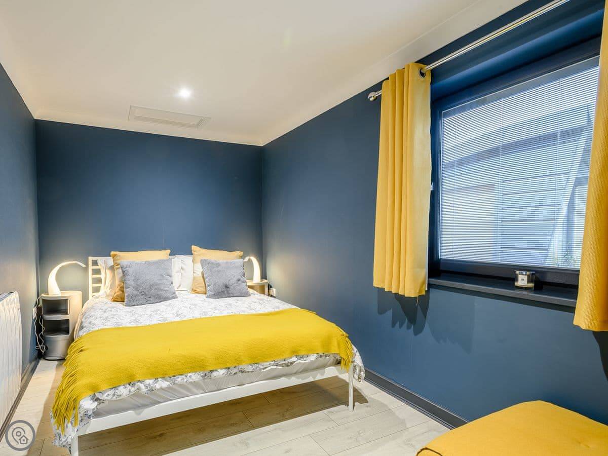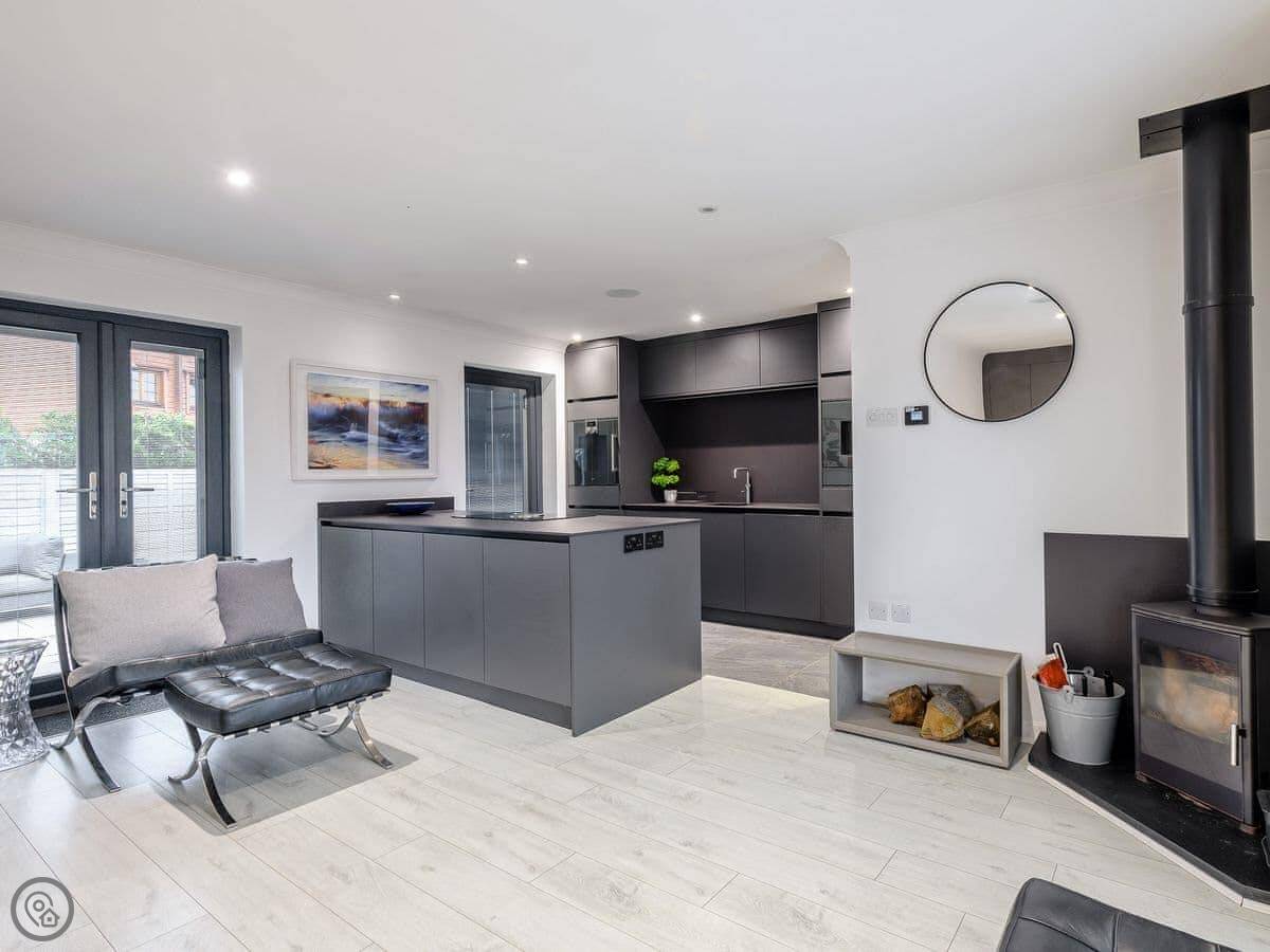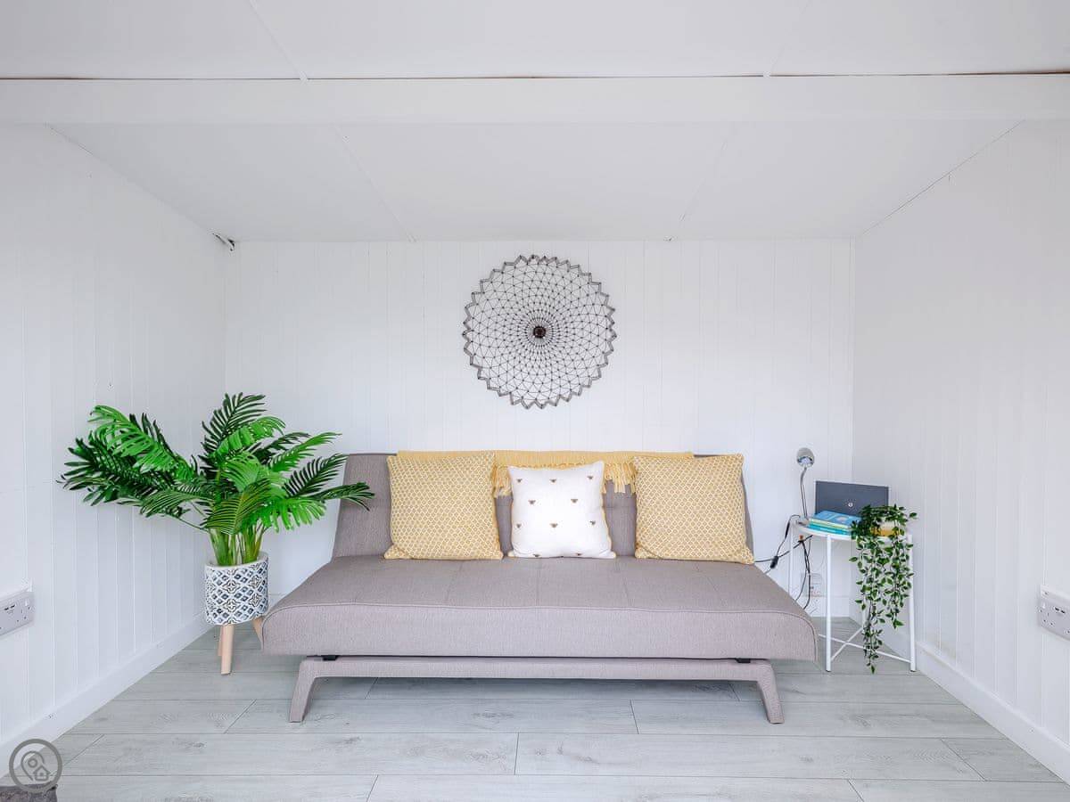 It sleeps two, one bedroom with a kingsize bed. It's a 5 Star property, which means it's been finished to a high standard. There's a wood burner in the main room and the kitchen is open plan with an island. It has some high-end appliances, like a Gaggenau oven and a proper coffee machine.