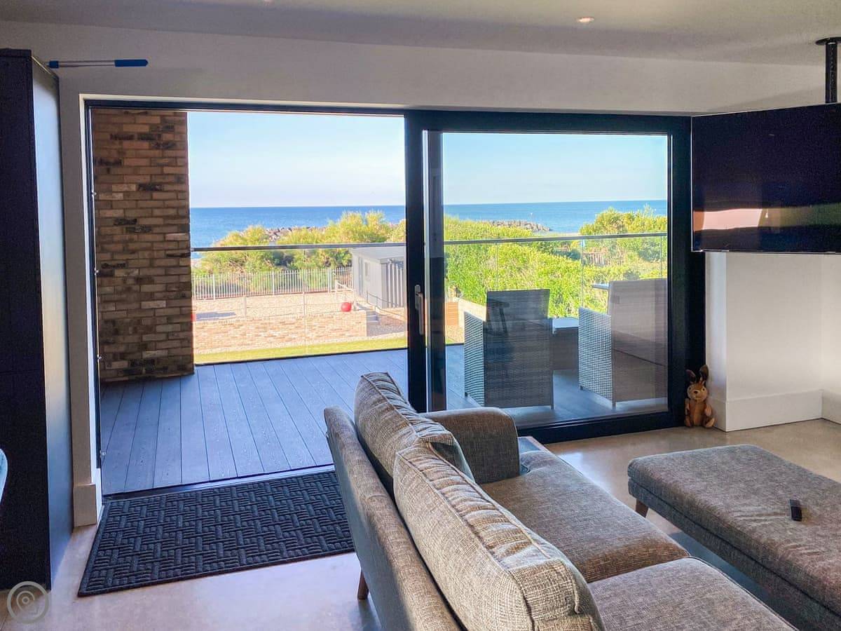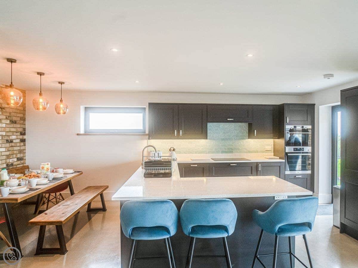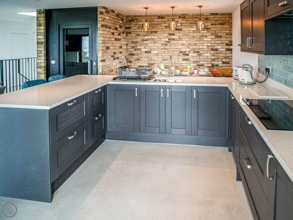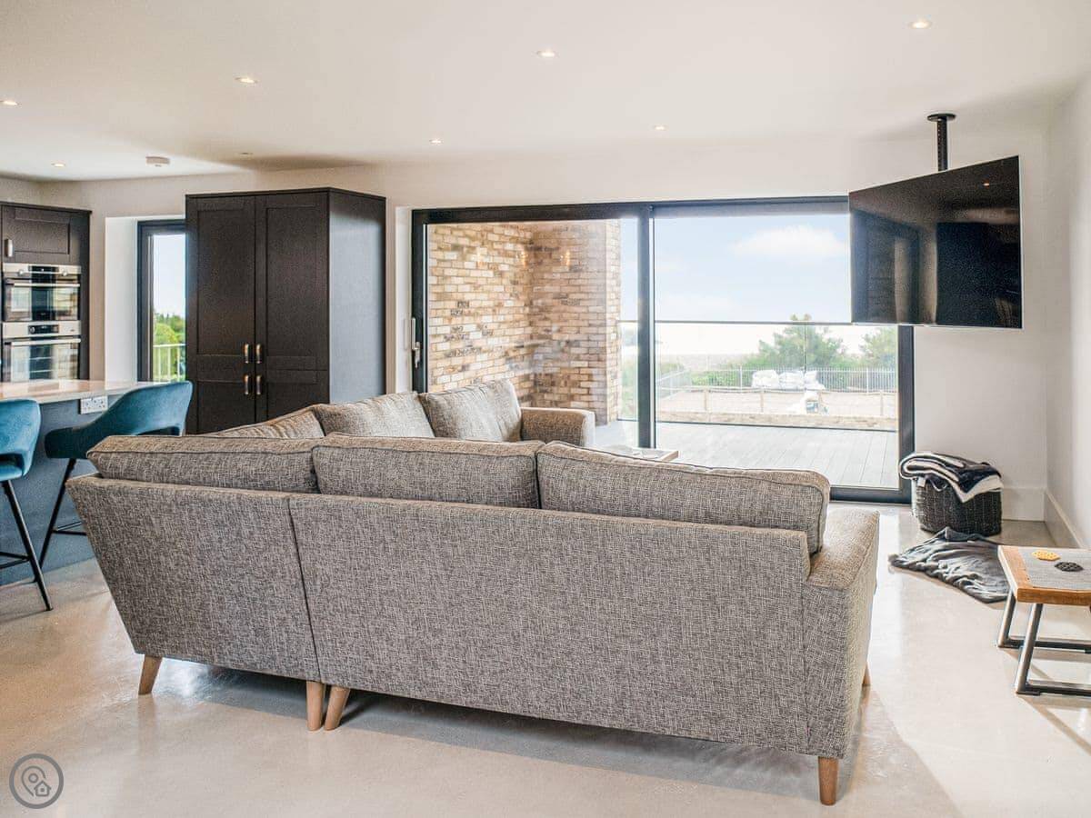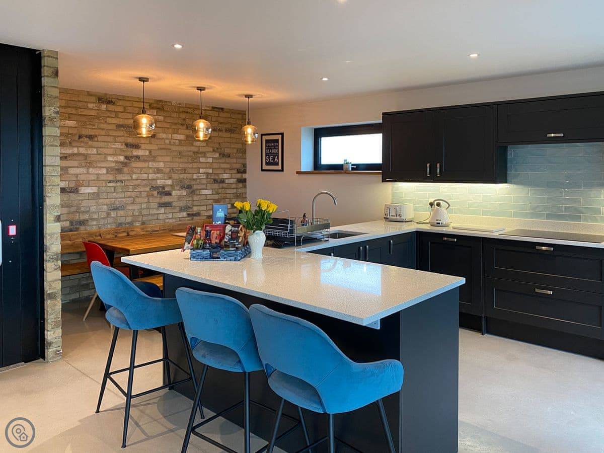 This is really evident when you arrive at the property. It also offers a very generous balcony that has mood lighting where you can sit and watch the world go by as you listen to the waves lap against the beach. This pet friendly property has some amazing features like a hot tub and a large lawned garden with a beach at the end. It also has its own lift so that you can access the top floor should you have mobility needs. With bedrooms on the ground floor and the first floor this is certainly a home that has all the accessibility you need for a staycation this year. The minimalistic and modern décor gives you a really modern feel and with the underfloor heating and the huge open plan kitchen/dining room is a very special place to sit and enjoy a relaxing time.