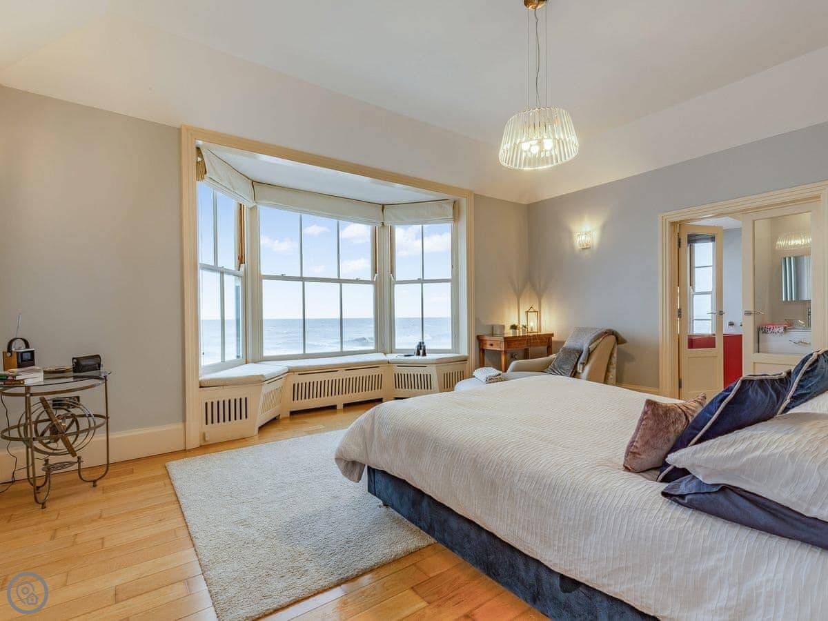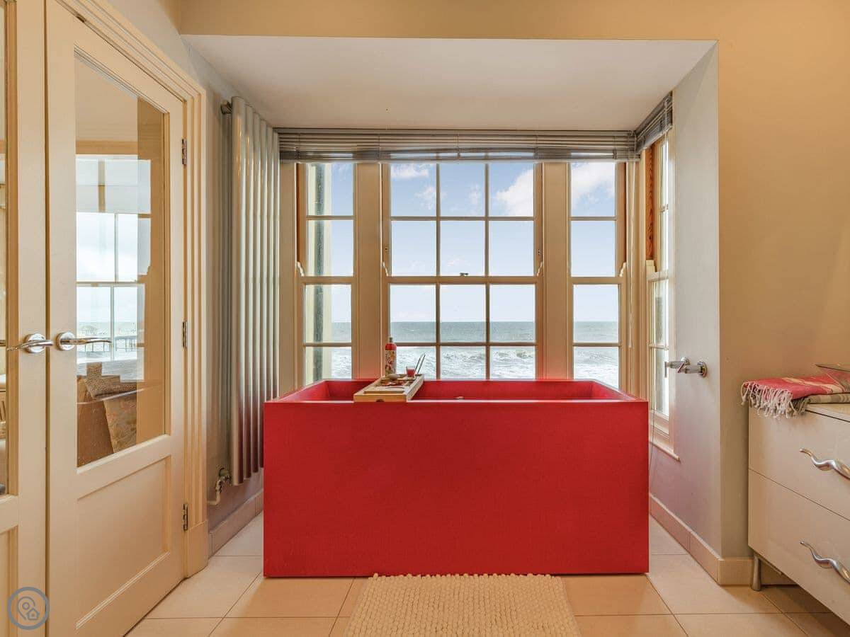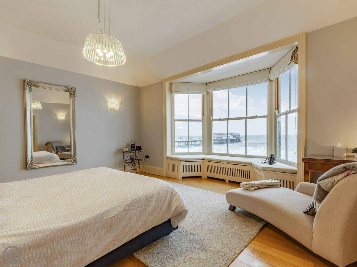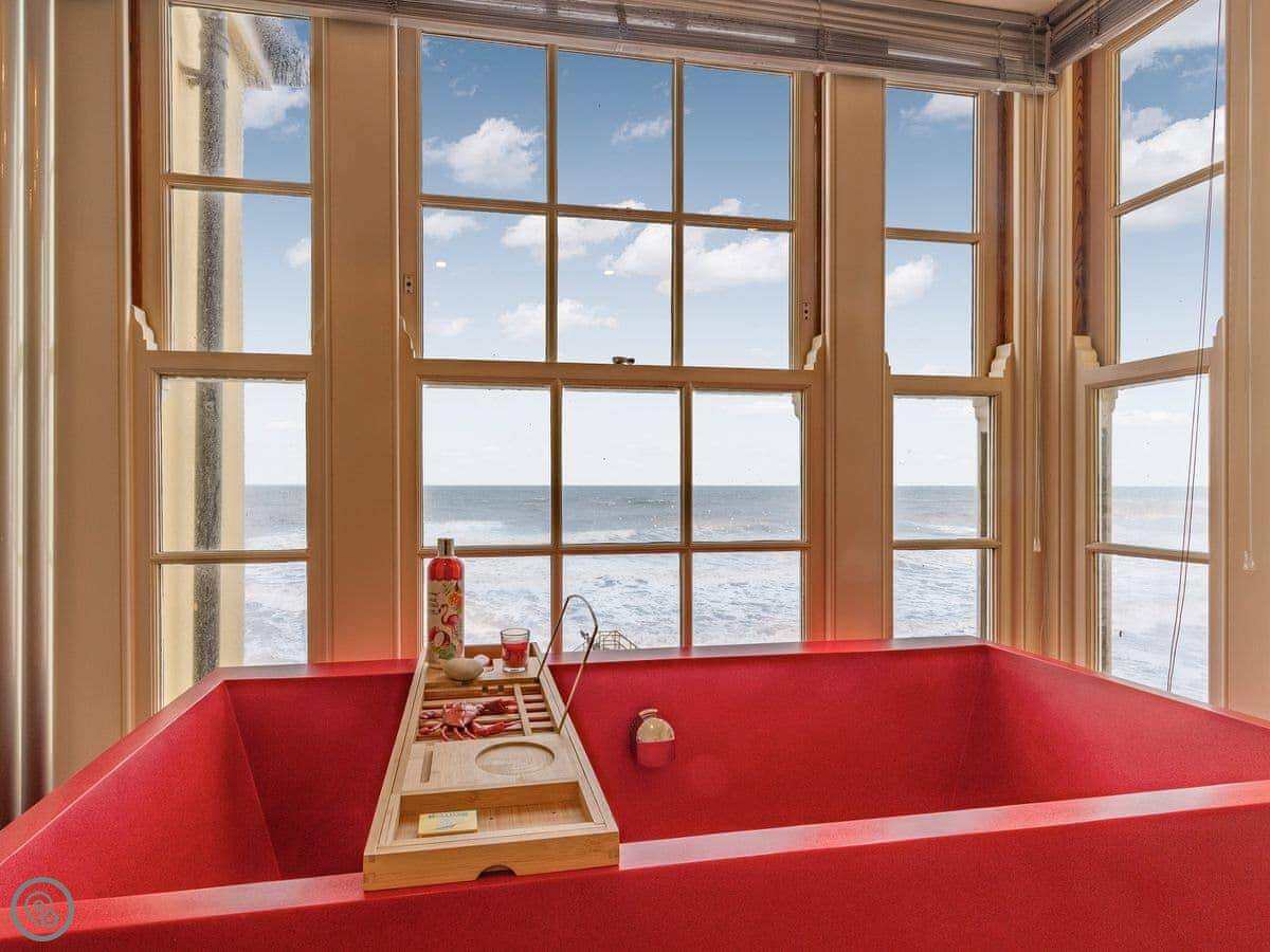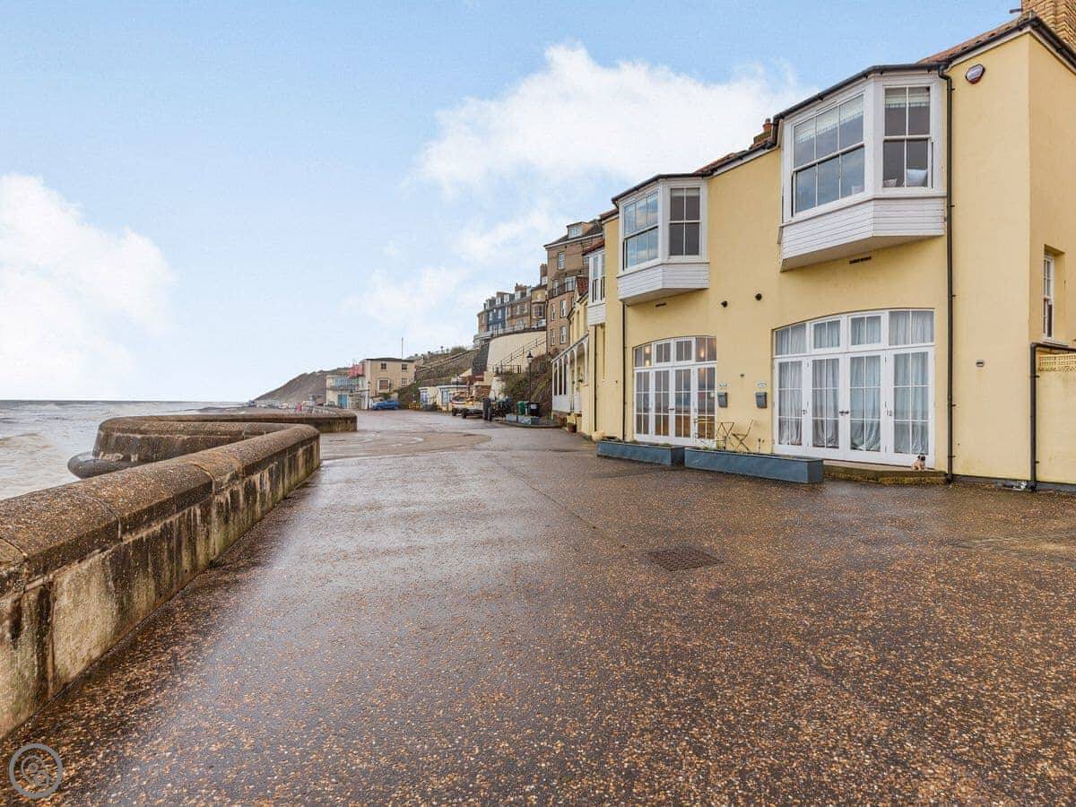 The Bath House is on the promenade in Cromer. It's right there, facing the sea and the pier. The view is good during the day, but I think it's best at night when the pier is lit up. You can sit and watch it.