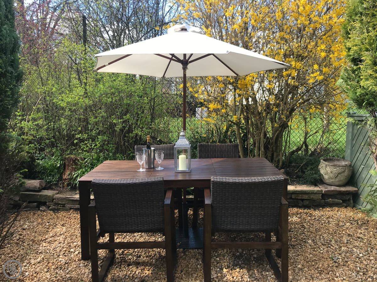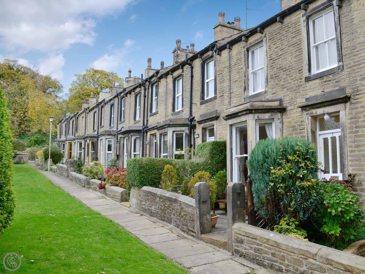 Ivy Cottage is in Skipton. It's a terraced house in a little row that's closed off to traffic. The view is over the grounds to the grammar school. It's about a ten minute walk into the town centre.