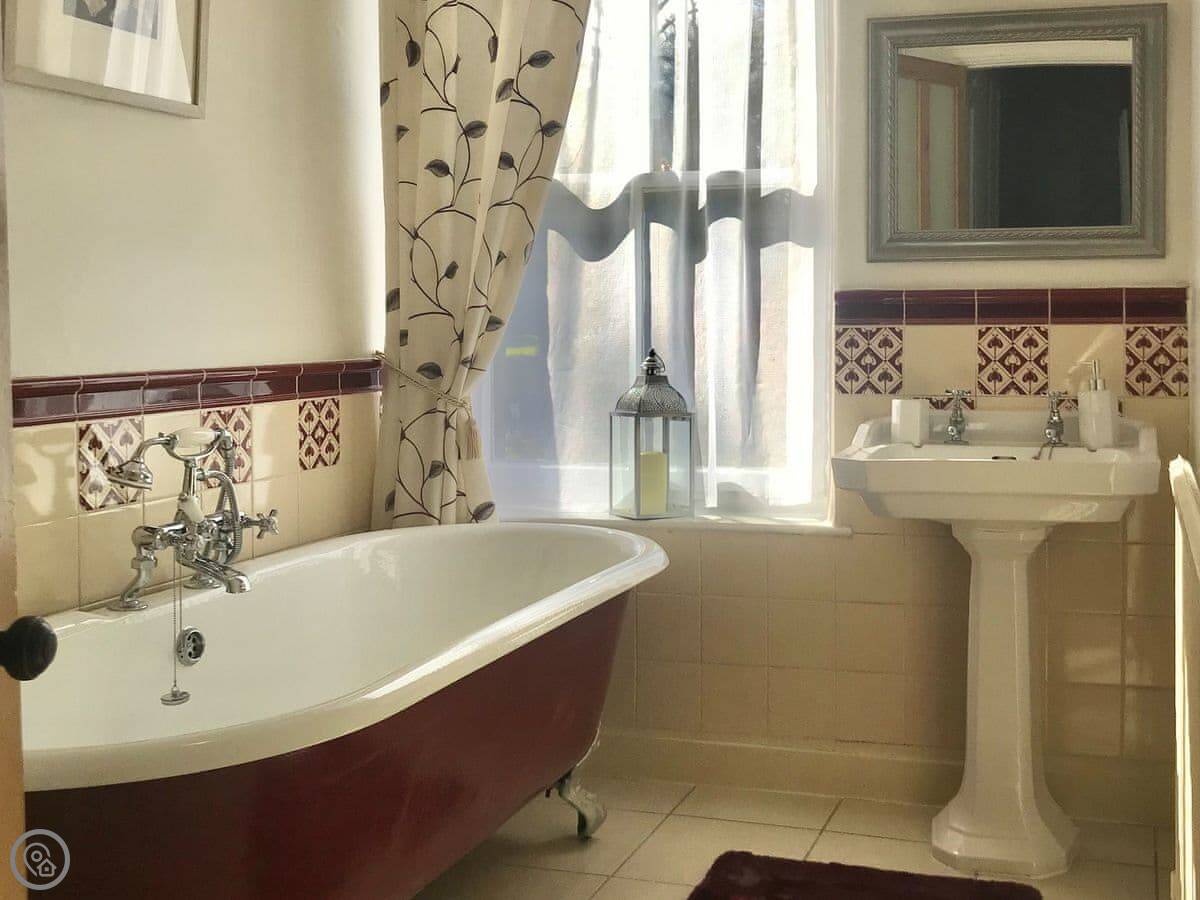 It sleeps four. Two bedrooms and one bathroom. It's a 3 Star place, so it's comfortable and clean, not luxurious. The stairs are steep, just so you know. It's an old cottage.