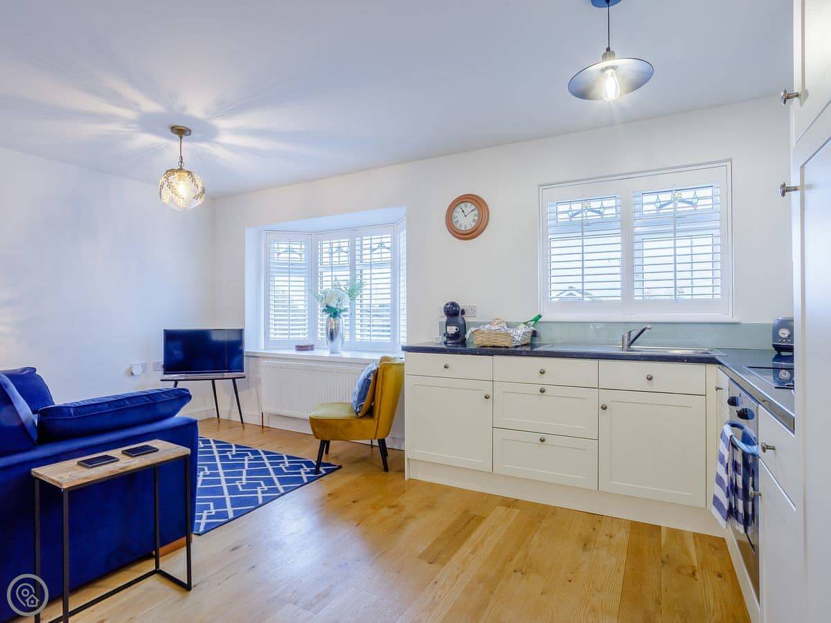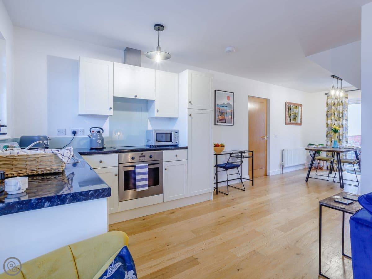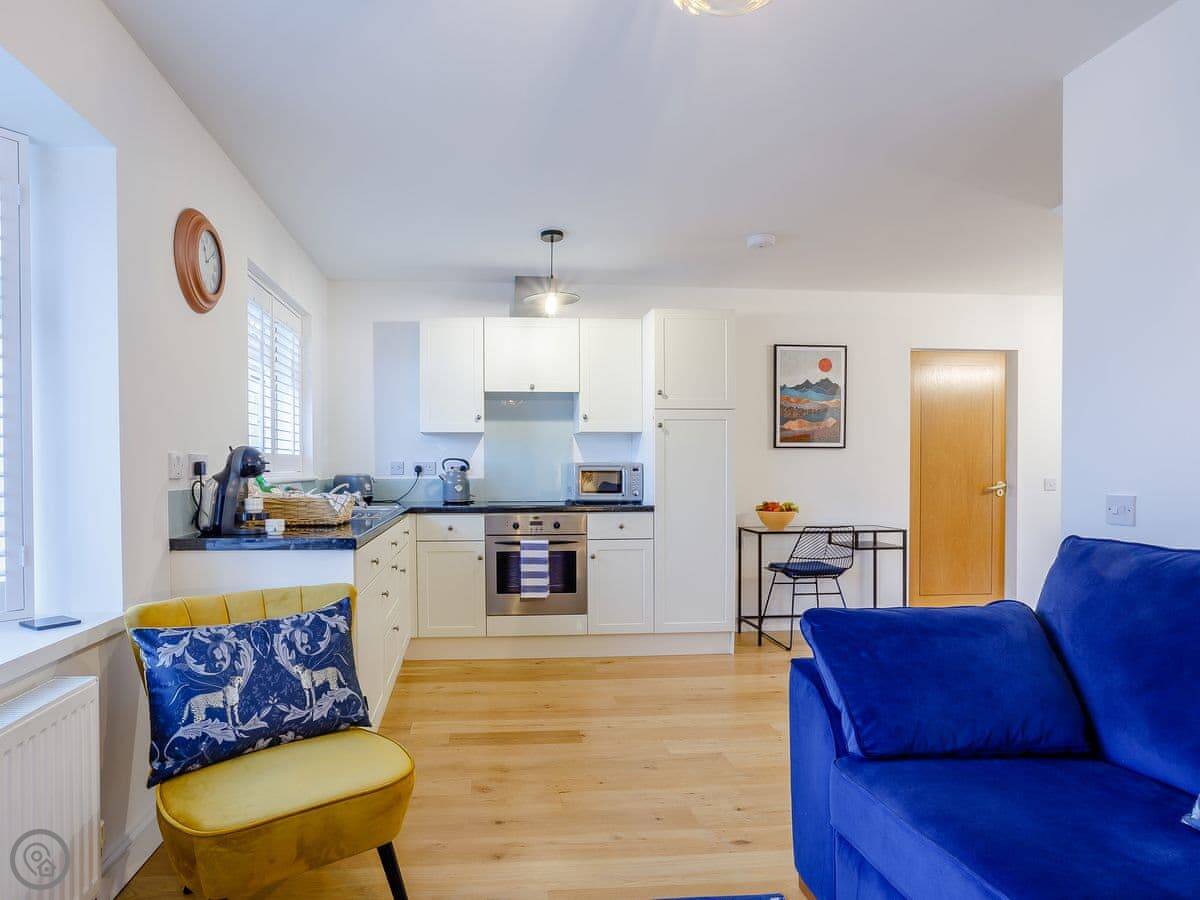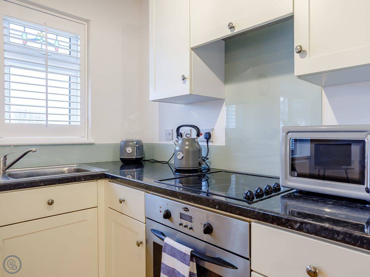 Facilities: it's got a washing machine, dishwasher, WiFi, and a small enclosed patio area. Everything is on one level so it's wheelchair accessible at the entrance. Bedding and towels are included.