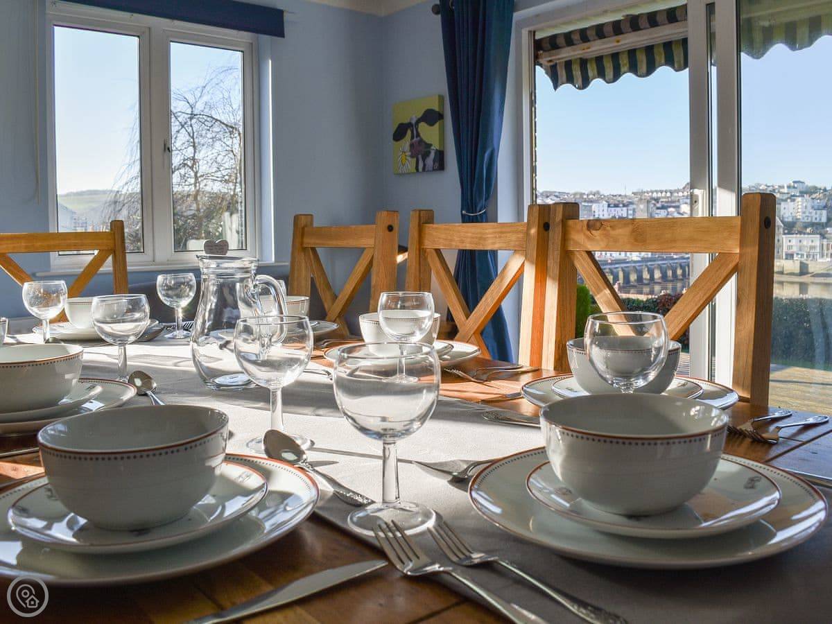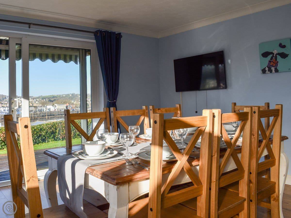 The Orchard is a well presented spacious bungalow with enviable views over the River Torridge which flows past Bideford joining the Taw Estuary at Instow and out into the Atlantic. The property is accessed via a steep driveway which has ample space for several cars . Access to the bungalow is either via the steps or convenient ramp leading down to the front door and garden. Inside the accommodation is all on one level and comprises three bedrooms, 2 super kings with zip & link beds (one with an additional 2’6 pull out single and a king size. The main bedroom has an en-suite shower room and lovely river and town views and there’s a family bathroom with a bath and shower cubicle. There’s a comfortable lounge with smart TV, a wood burner and patio doors leading out onto the large decking where you can enjoy the beautiful views and some al-fresco meals, breakfast or an evening drink. The kitchen/diner is the centrepiece of this property and offers everything you need to entertain and cater for your friends or family with patio doors so you can let the outside in, a sofa so you can enjoy the smart TV, dining table and a coffee machine for some real barista style beverages. Other than the oven and hob, the rest of the main appliances including washing machine, tumble dryer, microwave, dishwasher and fridge/freezer are all in the adjacent utility room.