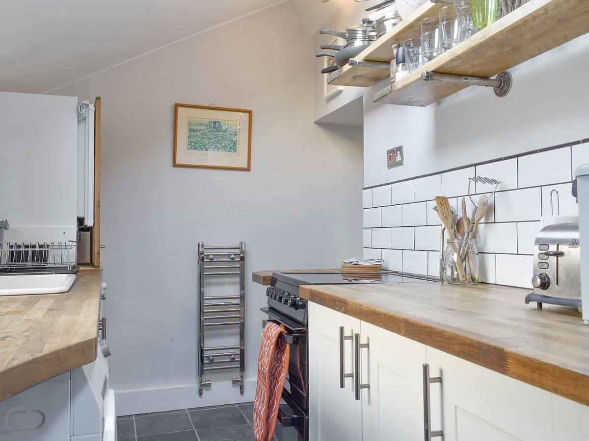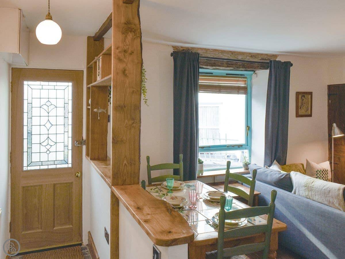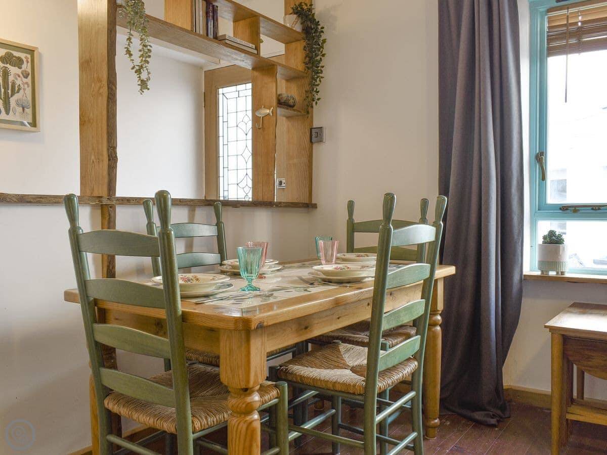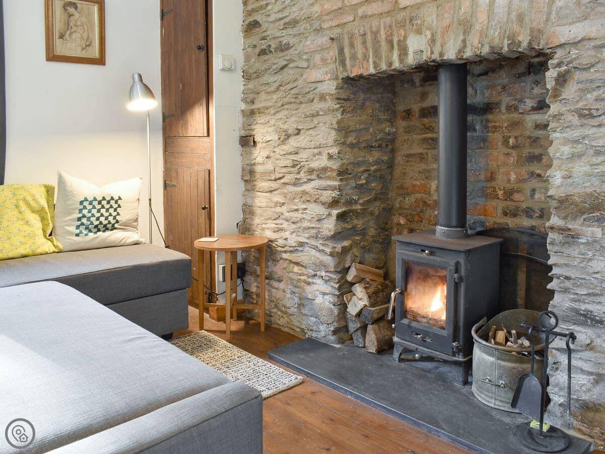 Downstairs there's a living and dining room with a wood burner. The kitchen is small but has what you need. Out the front is a garden with some seating.