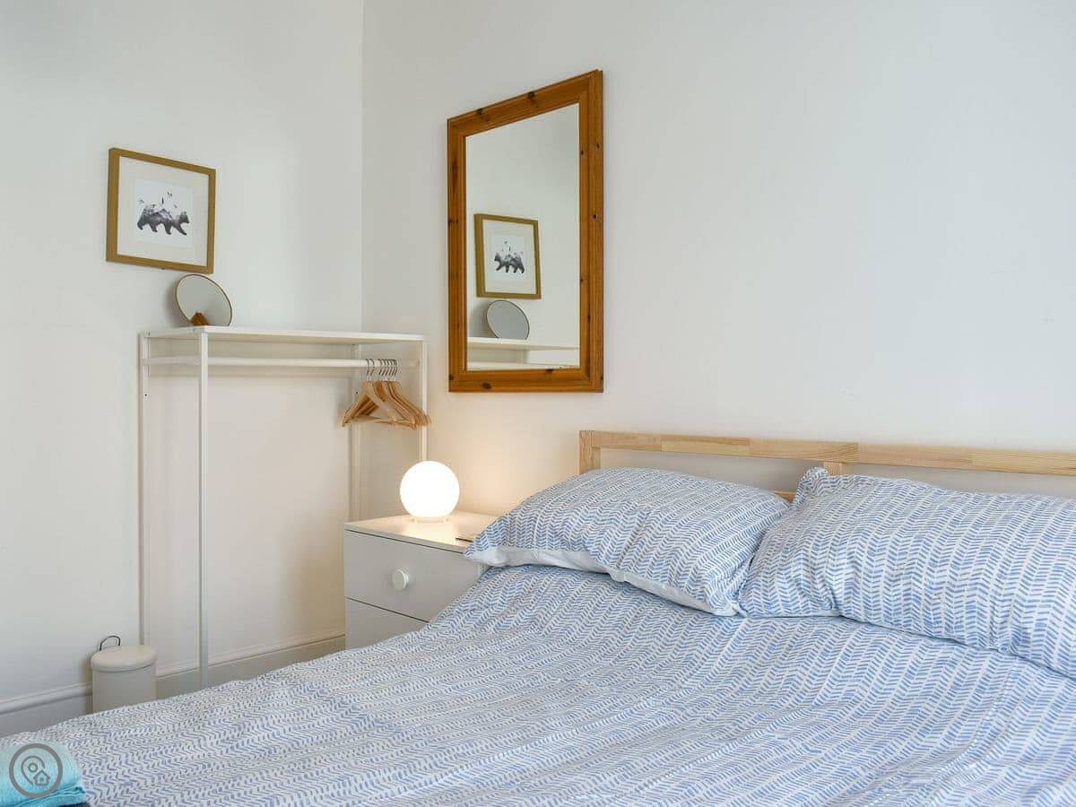 It sleeps four. Two bedrooms upstairs, one double and one with twin beds. One bathroom, which is a shower room on the ground floor. It's a 3 Star place, so it's clean and functional.