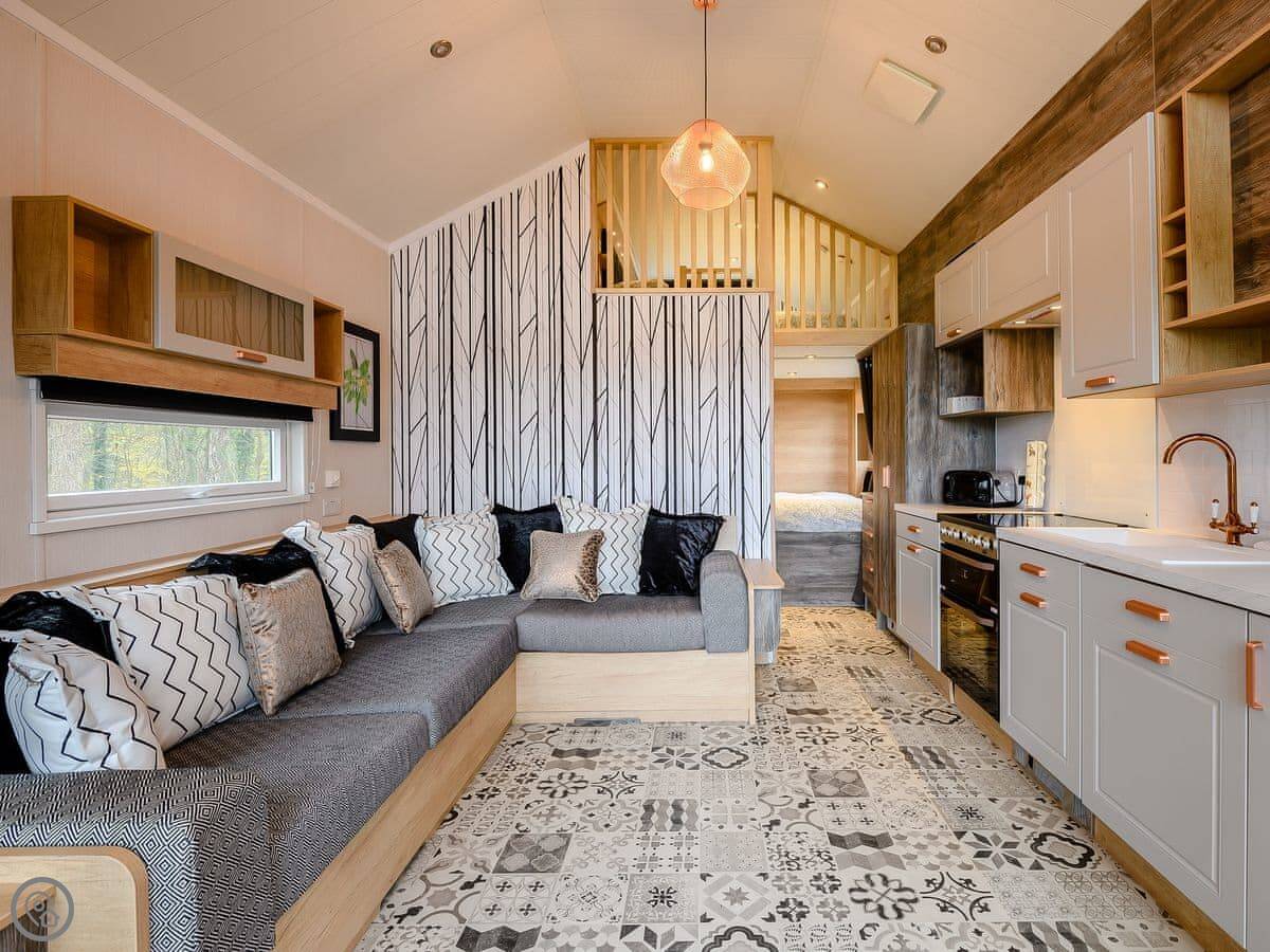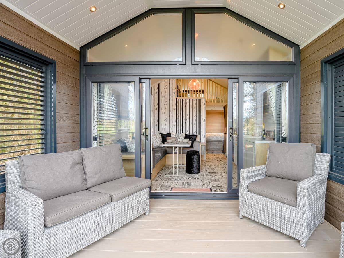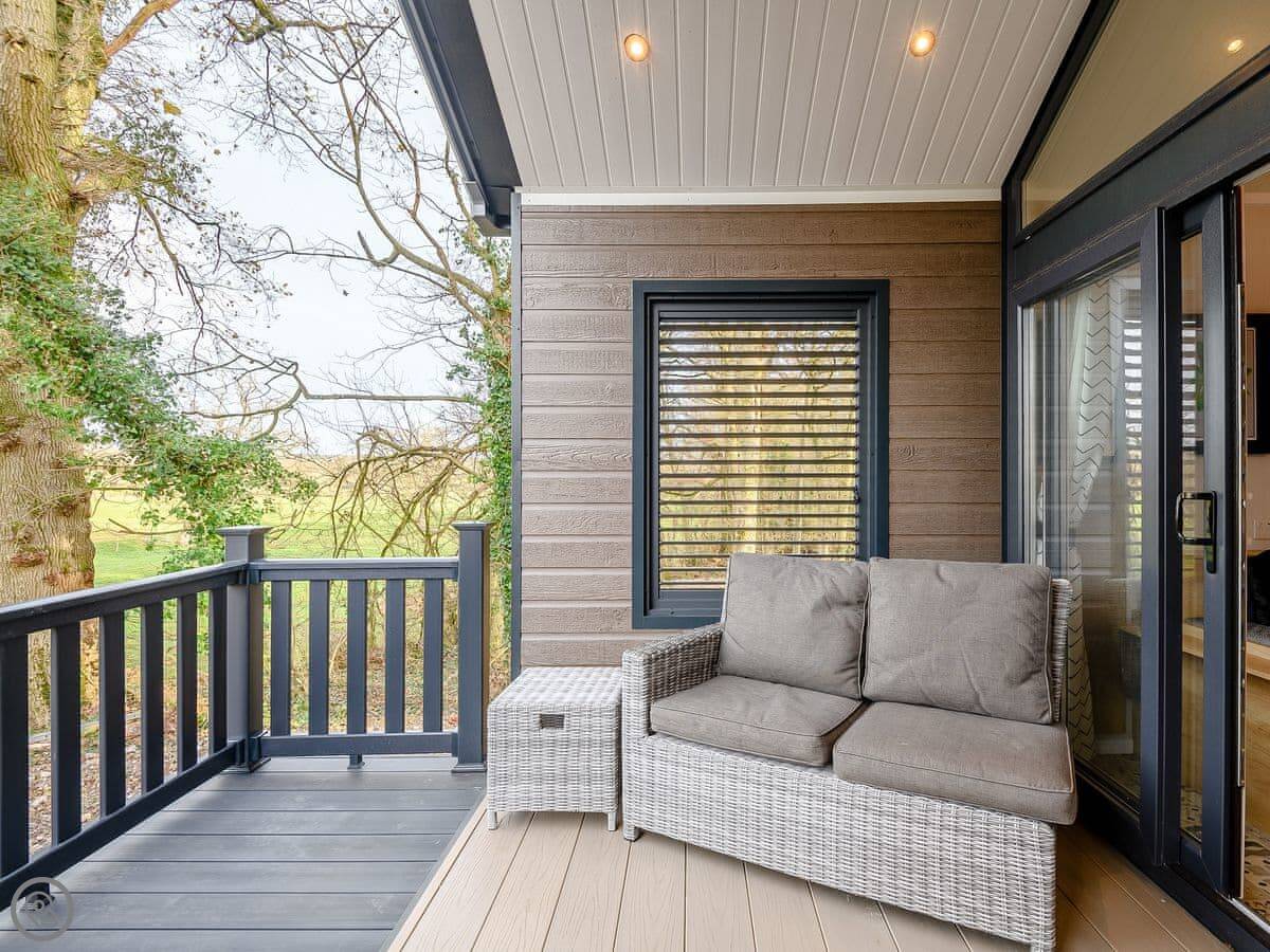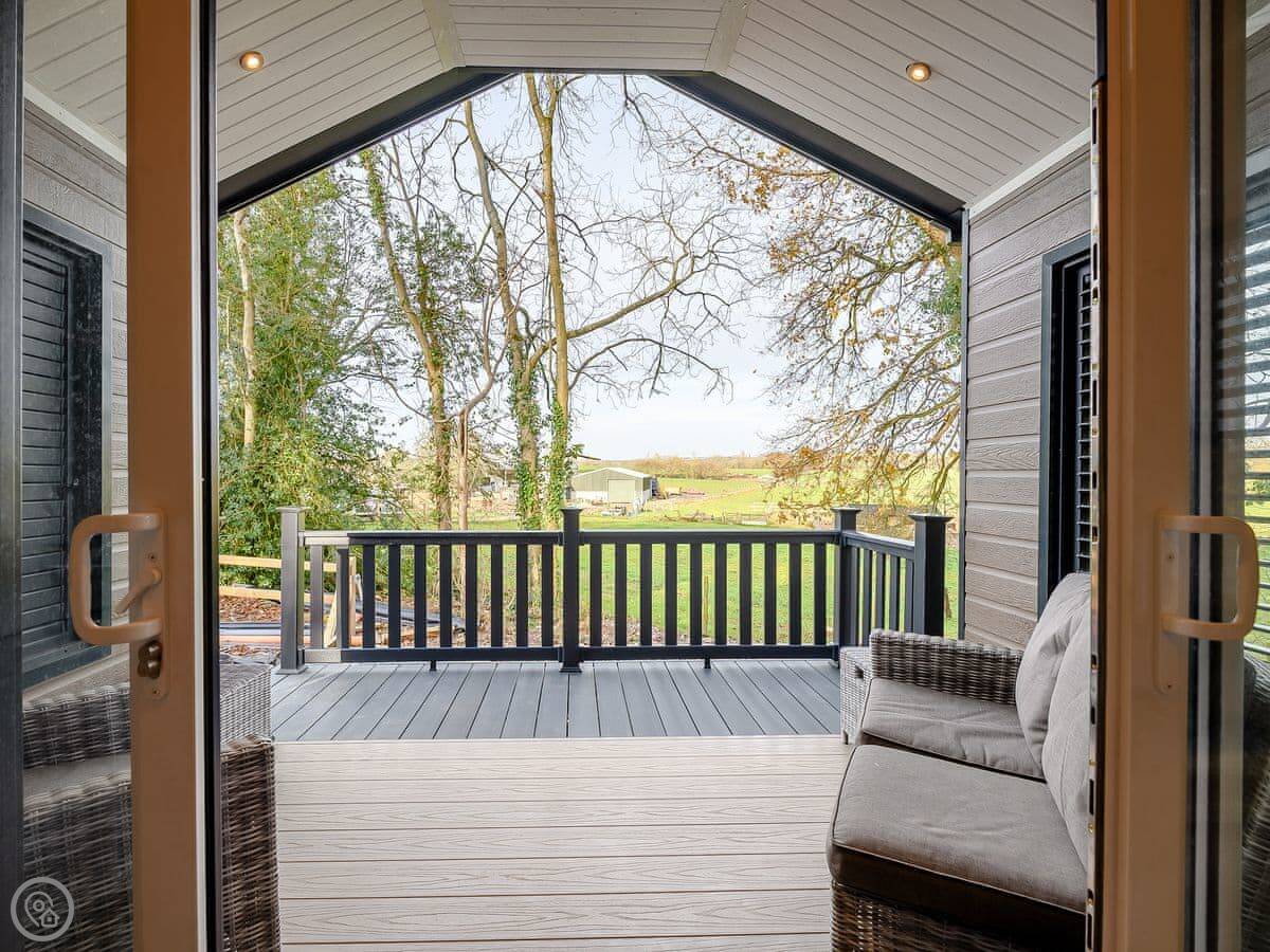 Woodpecker Lodge is a modern pod on our farm. It's detached and sits right on the edge of the woods. You get a clear view over the fields.
