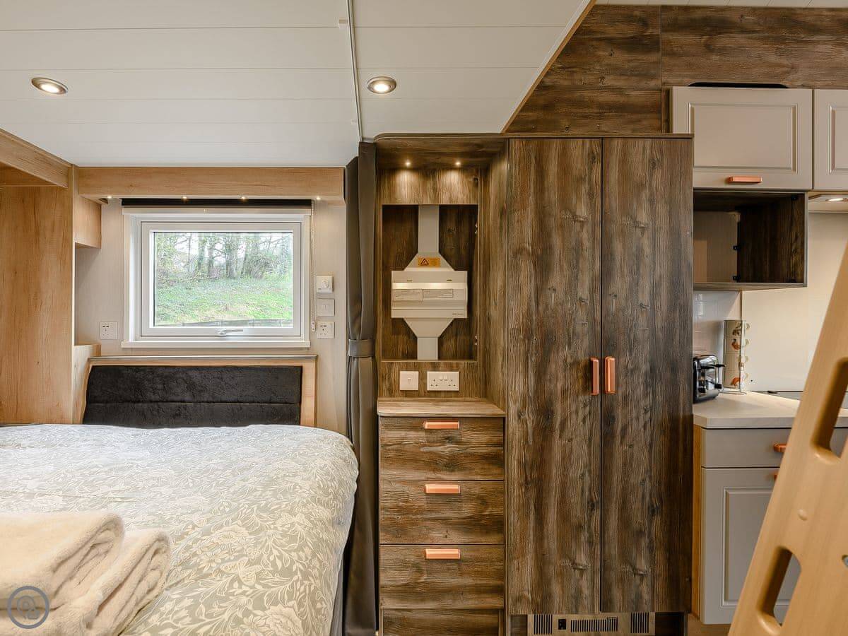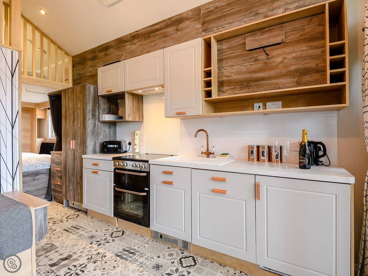 It sleeps two adults. There are two bedrooms and a shower room. It's got a 4 Star rating, so it's comfortable and clean. The living space is open plan.