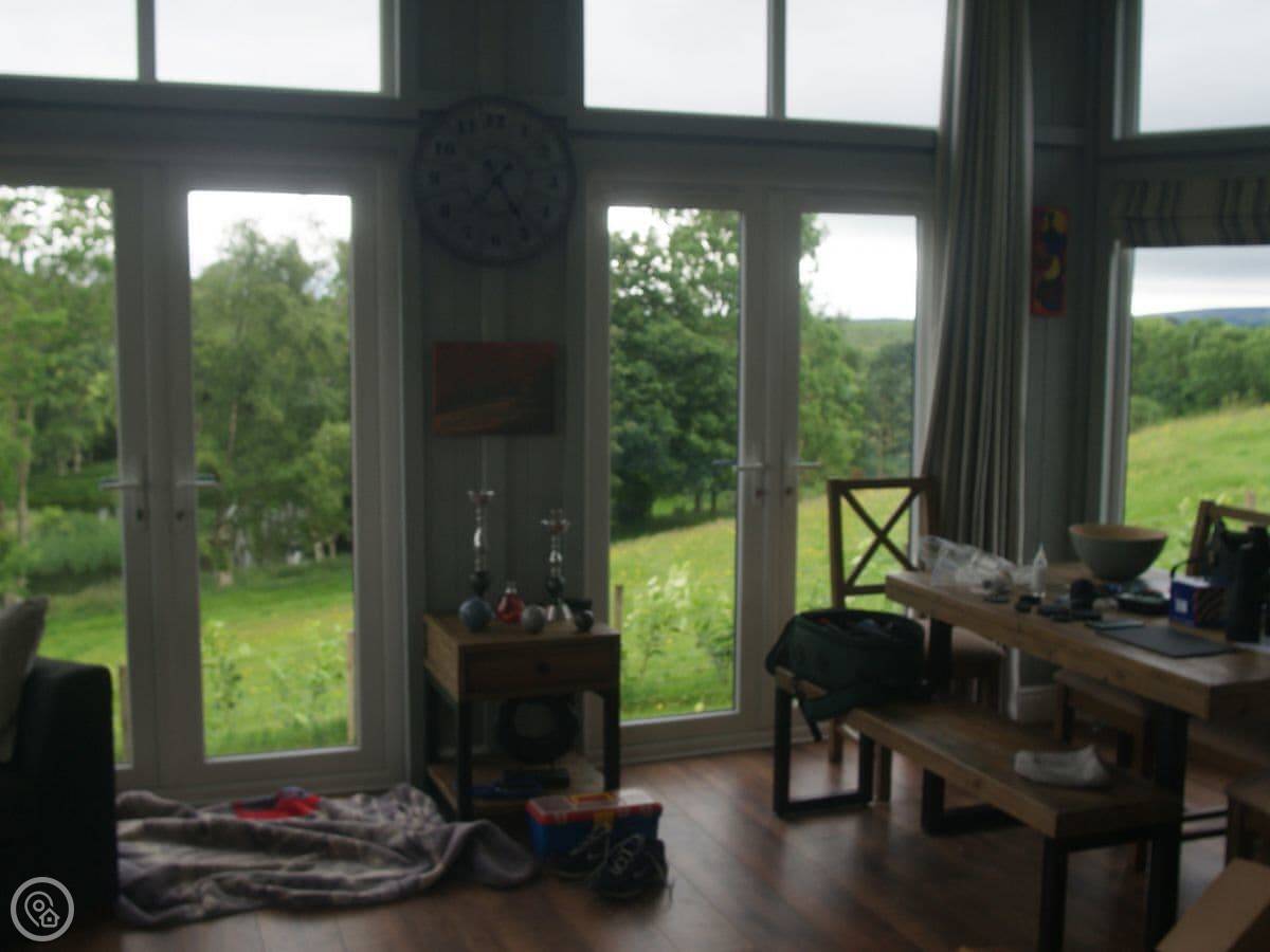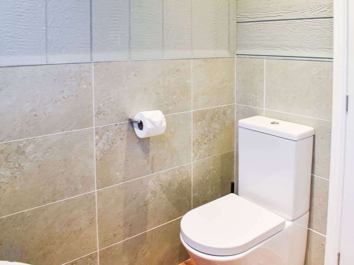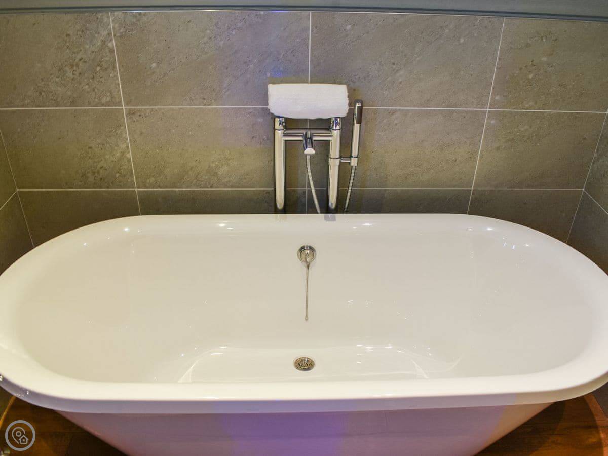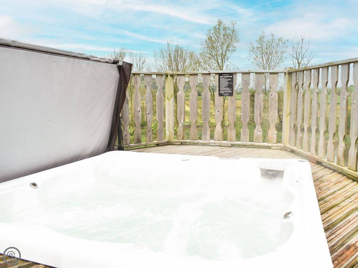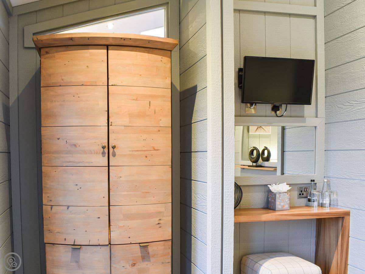 The moment you step into this detached lodge you are welcomed by a sumptuous, modern environment. The open plan space is light and airy, with plenty of room to relax and entertain in. The living area has deep, comfy sofas in which to settle in front of the large Smart TV, or maybe challenge someone to a game on the Xbox. The dining area boasts a large table and comfy chairs and is ideally placed to watch the chef do his work. The kitchen has every appliance you could ask for with a 5-burner hob and even a wine chiller to ensure that your evening tipple is served at the perfect temperature. The first bedroom is spacious with quality fixtures and fittings around the double bed; across the way is the family bathroom with a deep roll-top bath, so you can soak away the aches of a good day’s walking. The master bedroom has a kingsize bed at its centre, and again the quality of the fixtures shine out, including the realistic effect fire in the corner. It has a large en-suite with shower cubicle and even a walk-in wardrobe behind the bed. The final detail is a small room for your canine friend with external access.