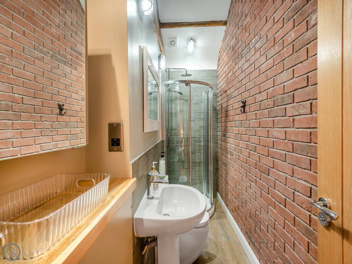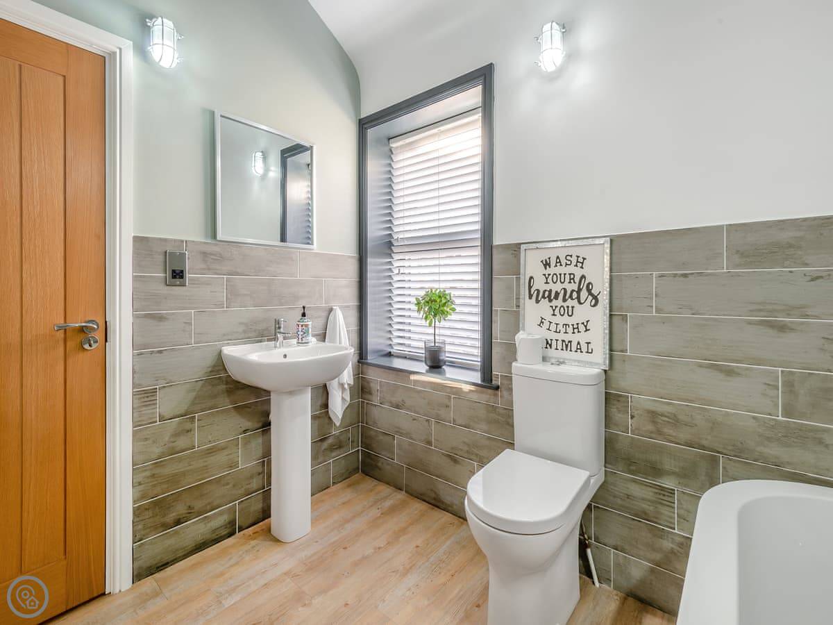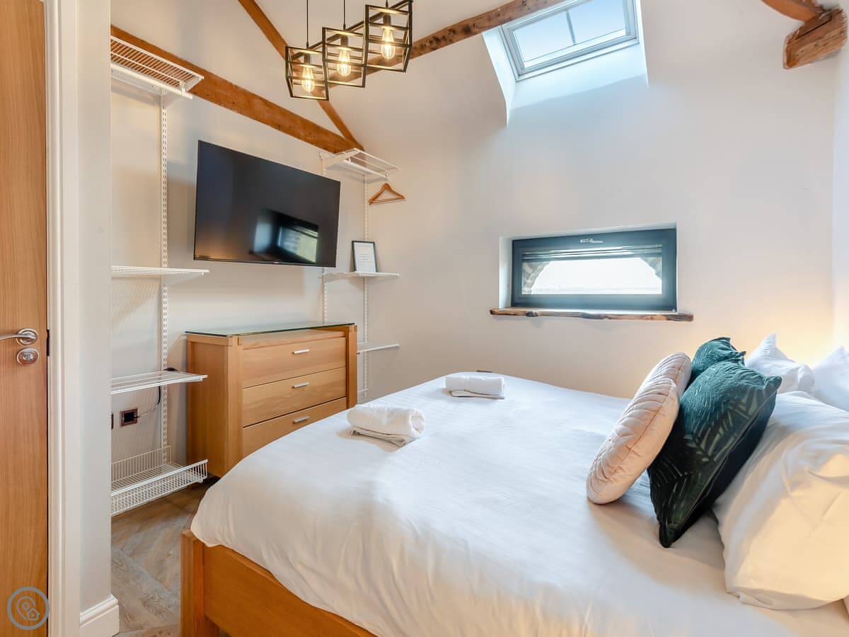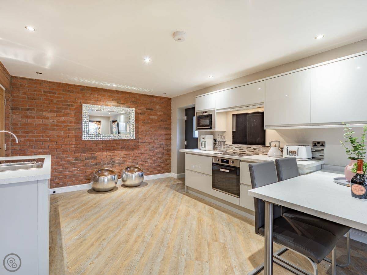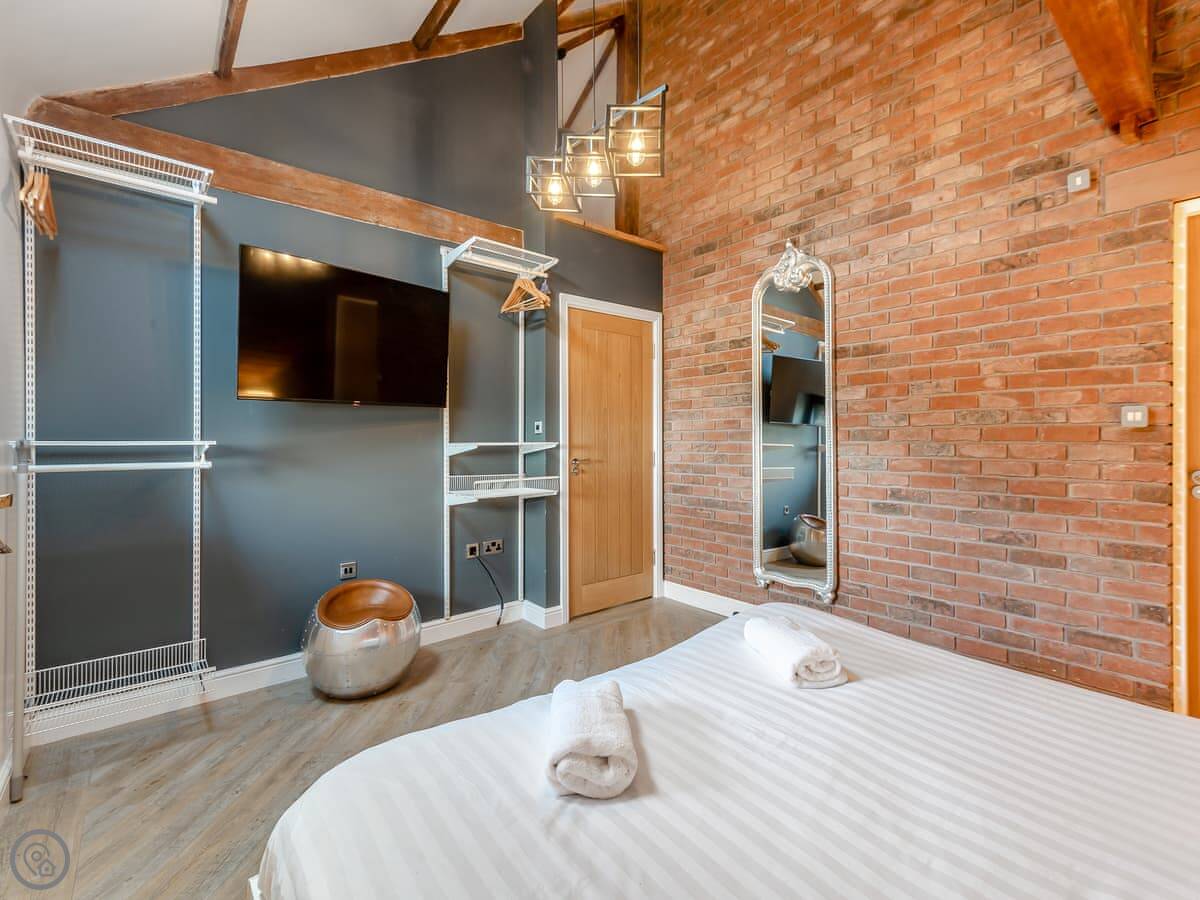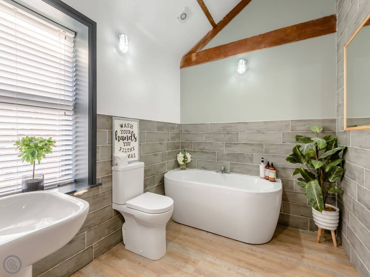 Move into the large living space with original stone and brick walls, complimented sympathetically with additional Cumbrian brick walls and Cumbrian sandstone headers. The comfortable open-plan living area accommodates 6-7 people, creating a place where everyone can relax in comfort, including people in wheelchairs or with limited mobility. There is a wall mounted 75" TV on display, which is perfect for those movie nights in with popcorn and nibbles. Located just off the living area is a generously sized downstairs bedroom with a kingsize bed and wet room with a roll-in shower facility, grab rails, and accessible sink and toilet. It also features the original stone walls, as well as having its own door to the property via a ramp. The well-equipped kitchen and dining area is perfect for mealtimes, and as an additional seating area to make the most of this spacious accommodation. The sumptuous upstairs bedrooms include an en-suite master bedroom, a bunk room with its own en-suite toilet, and a further kingsize room. The outdoor spaces are accessible to people with a variety of mobility requirements.