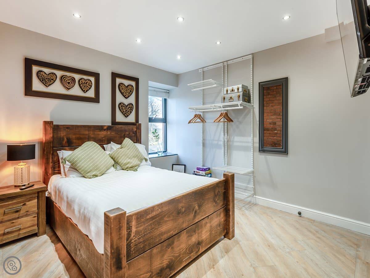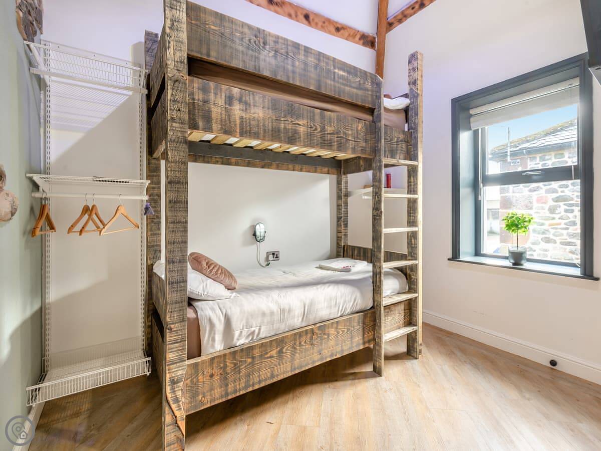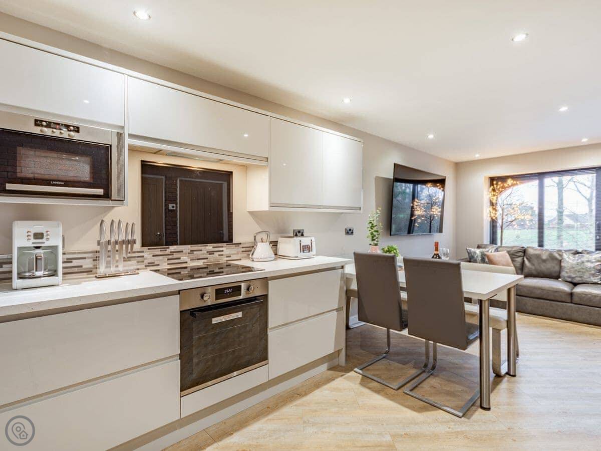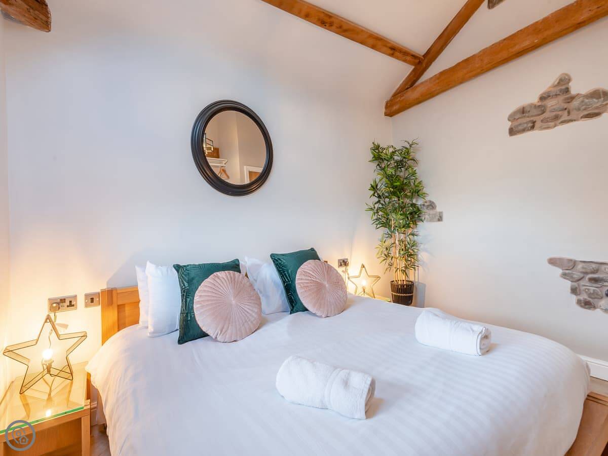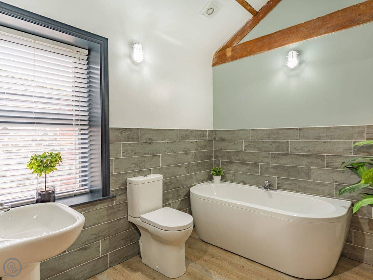Move into the large living space with original stone and brick walls, complimented sympathetically with additional Cumbrian brick walls and Cumbrian sandstone headers. The comfortable open-plan living area accommodates 6-7 people, creating a place where everyone can relax in comfort, including people in wheelchairs or with limited mobility. There is a wall mounted 75" TV on display, which is perfect for those movie nights in with popcorn and nibbles. Located just off the living area is a generously sized downstairs bedroom with a kingsize bed and wet room with a roll-in shower facility, grab rails, and accessible sink and toilet. It also features the original stone walls, as well as having its own door to the property via a ramp. The well-equipped kitchen and dining area is perfect for mealtimes, and as an additional seating area to make the most of this spacious accommodation. The sumptuous upstairs bedrooms include an en-suite master bedroom, a bunk room with its own en-suite toilet, and a further kingsize room. The outdoor spaces are accessible to people with a variety of mobility requirements.