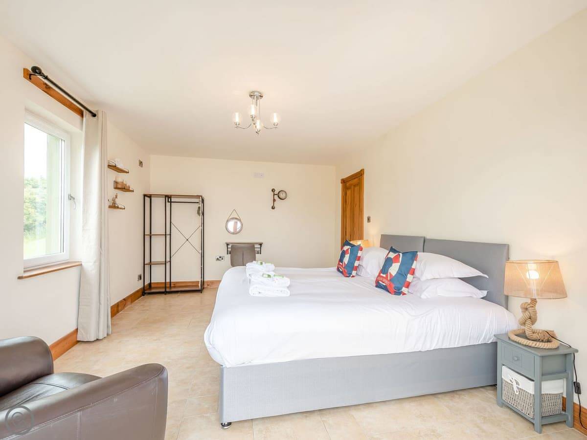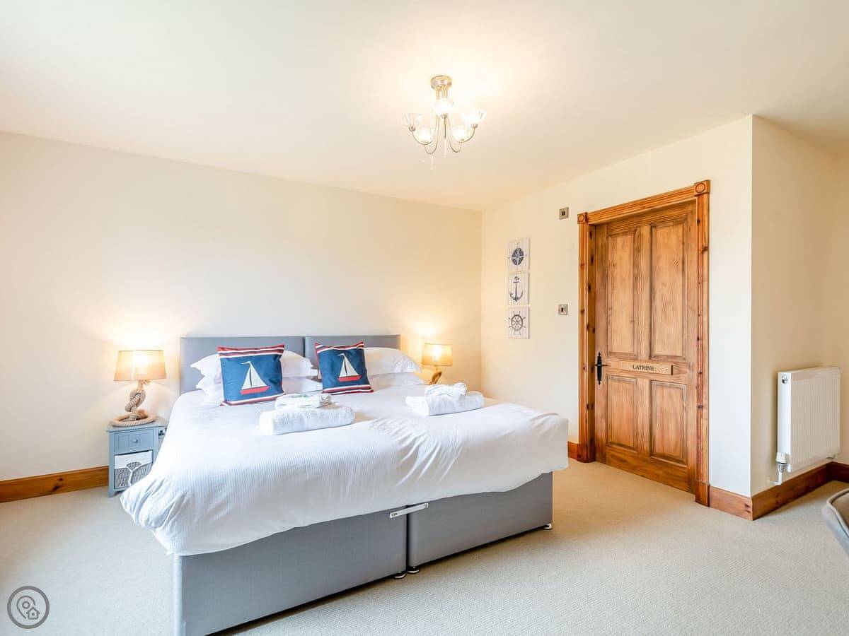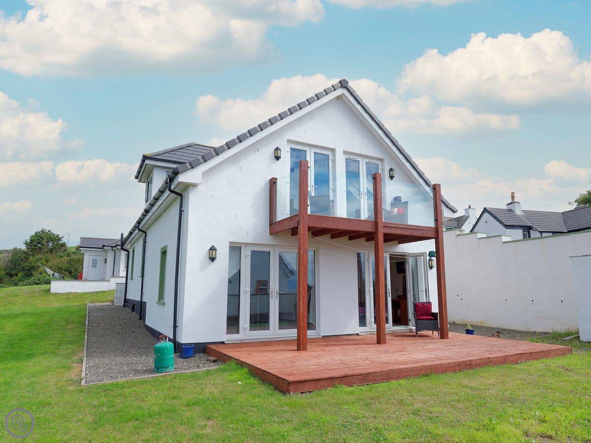 It sleeps eight people. There are four bedrooms and two bathrooms. One bathroom is an ensuite off the main bedroom. Two of the bedrooms have doors that go straight out to the garden. It's got a 4 Star rating.