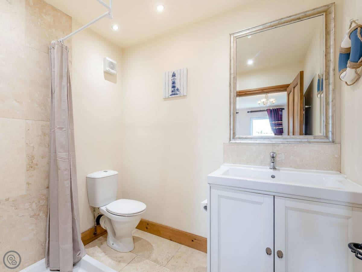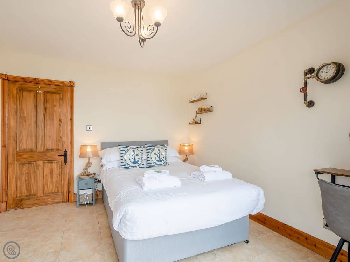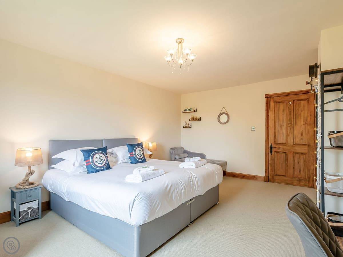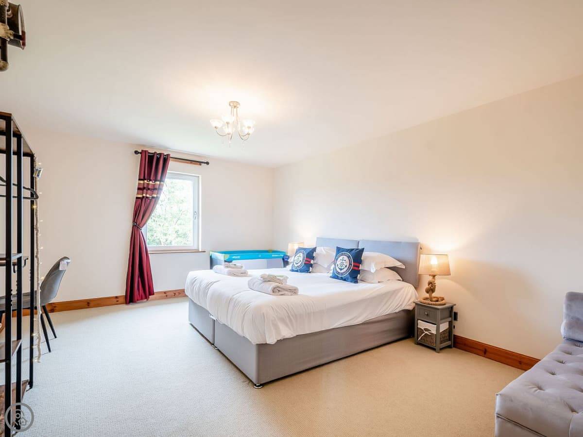 It sleeps eight people. There are four bedrooms and two bathrooms. One bathroom is an ensuite off the main bedroom. Two of the bedrooms have doors that go straight out to the garden. It's got a 4 Star rating.