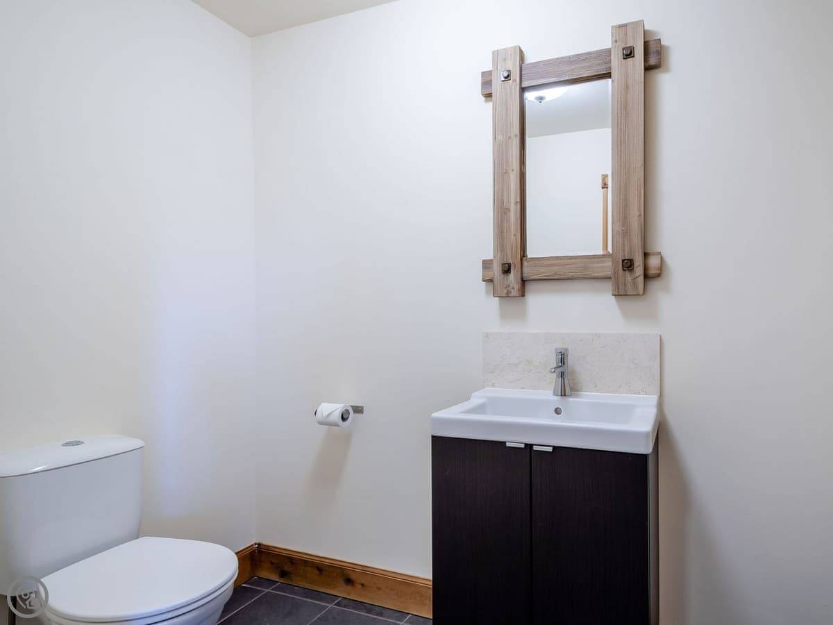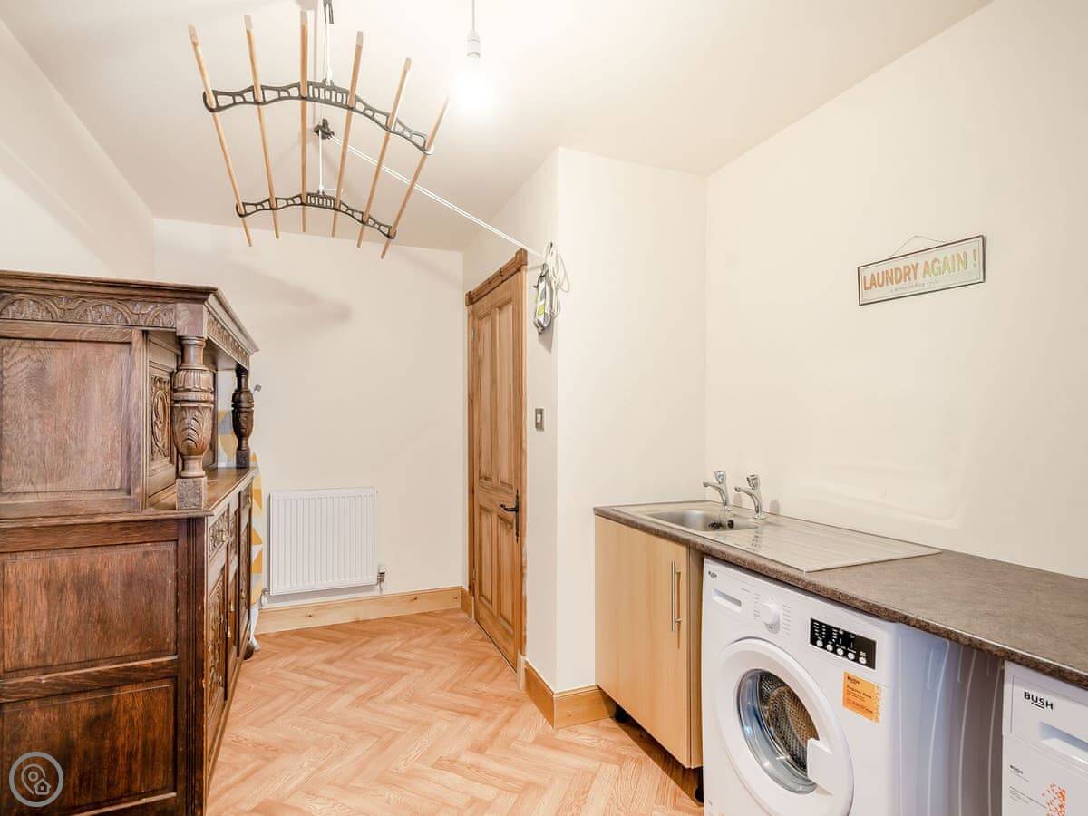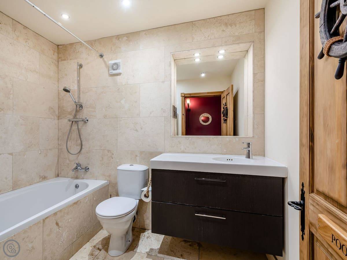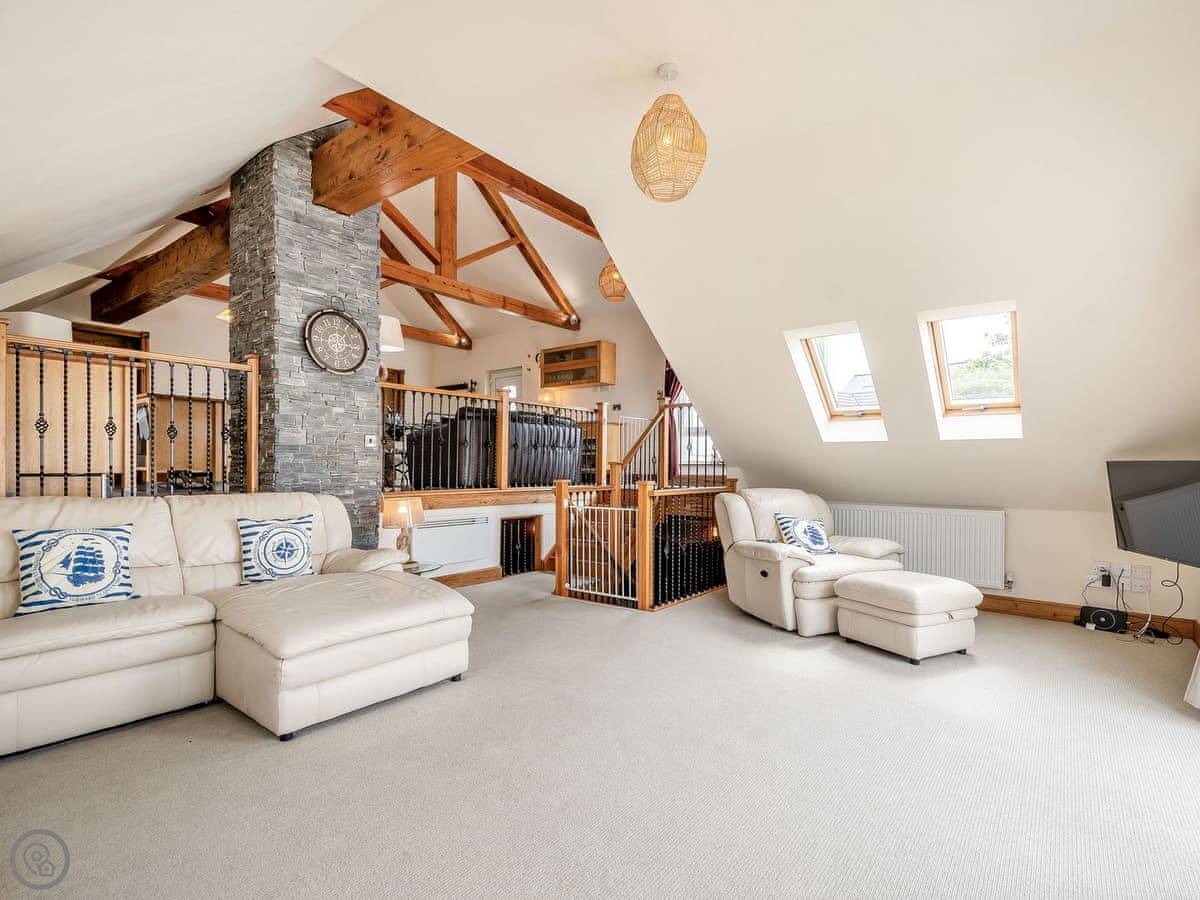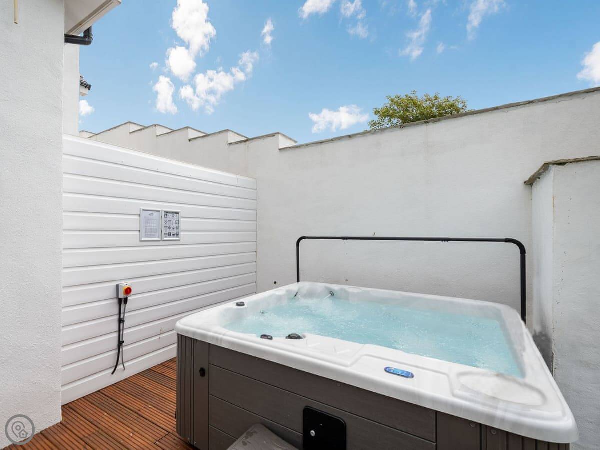 Facilities: it has a hot tub, which is private. There's a garden and parking. Wifi, TV, dishwasher, washing machine. Bedding and towels are included. No pets. The stairs inside are fine.