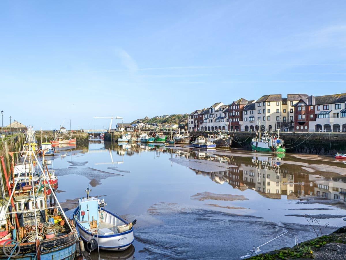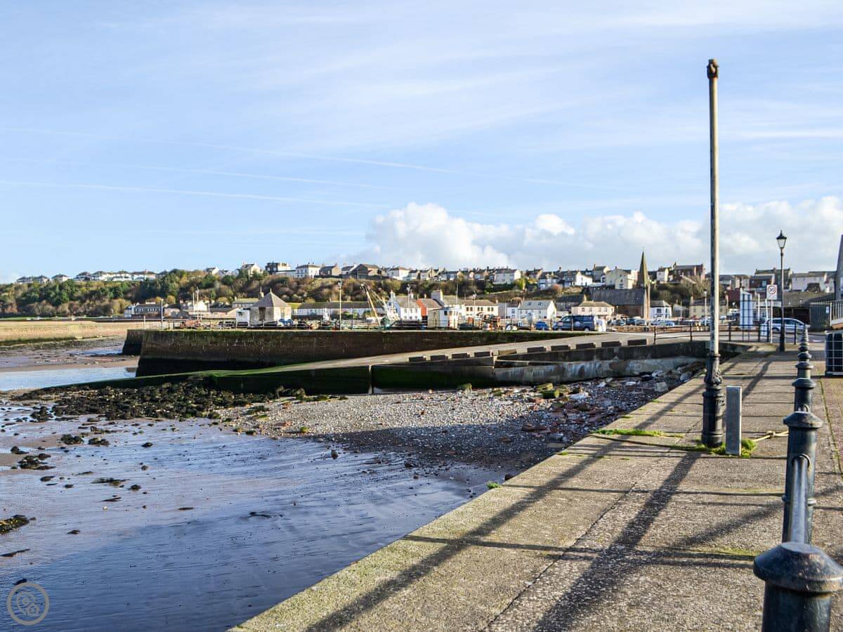 You're right in the town. It's a two minute walk to the high street for shops, cafes, and pubs. The harbour and the beach are close by for a stroll. You can take dogs on the beach.