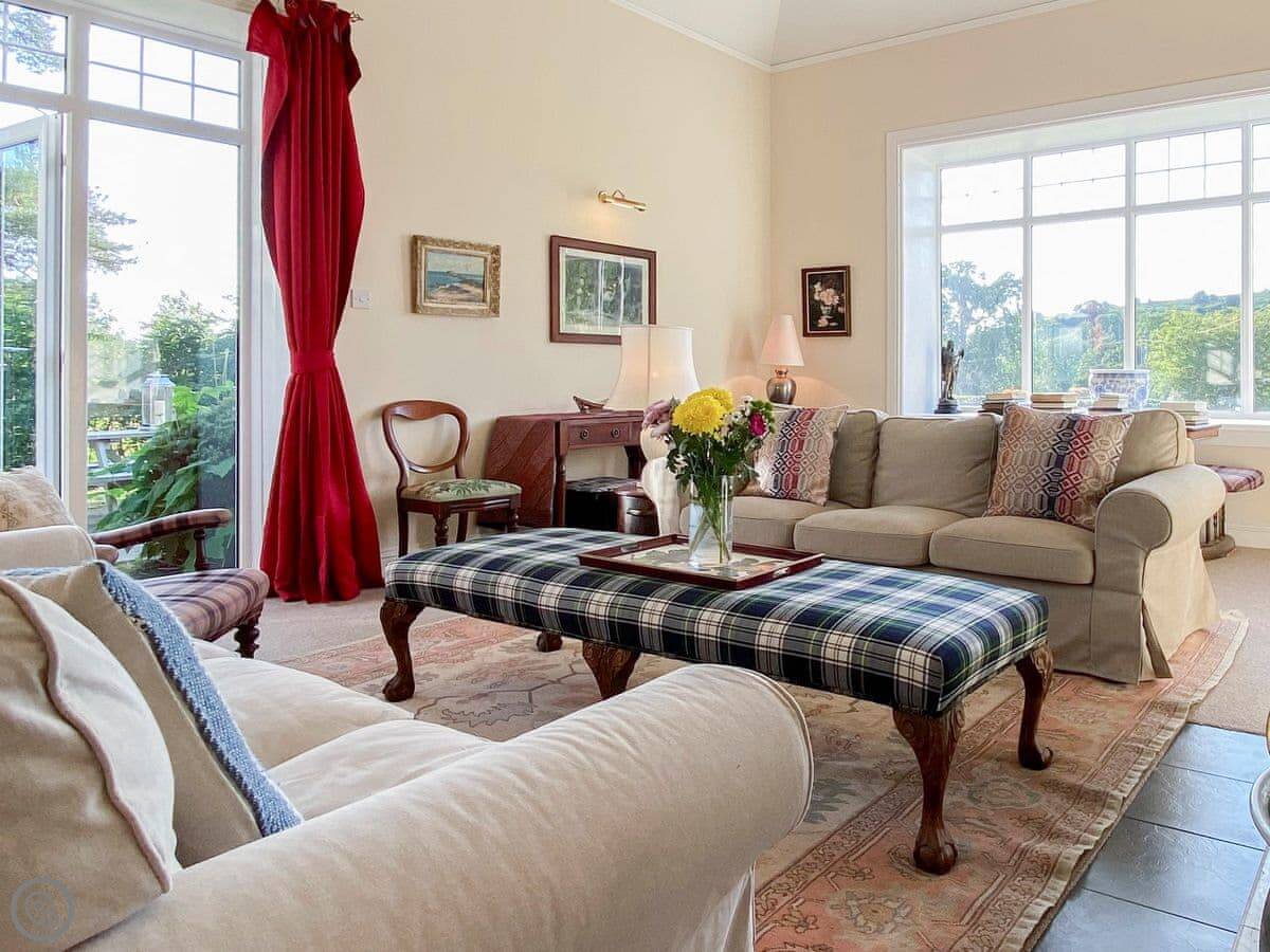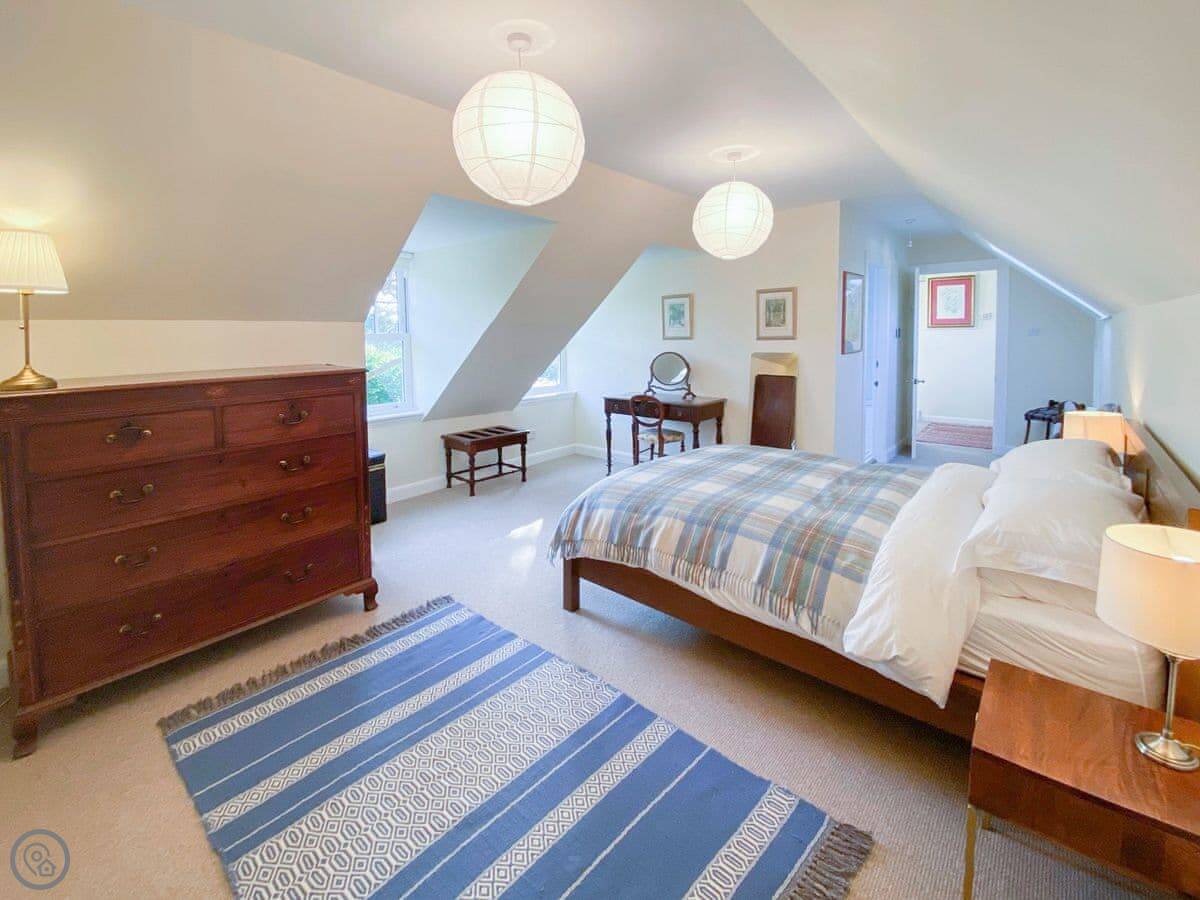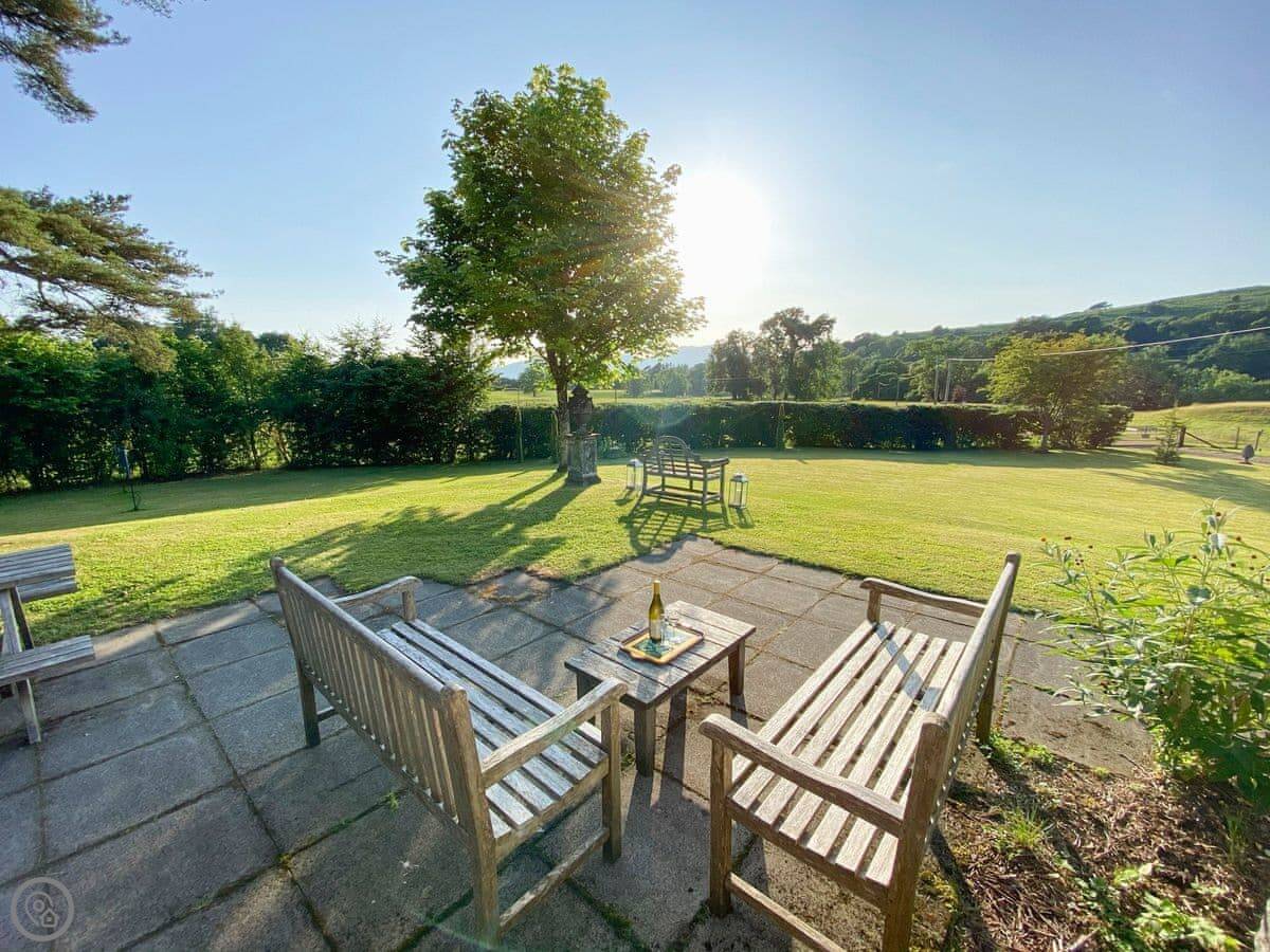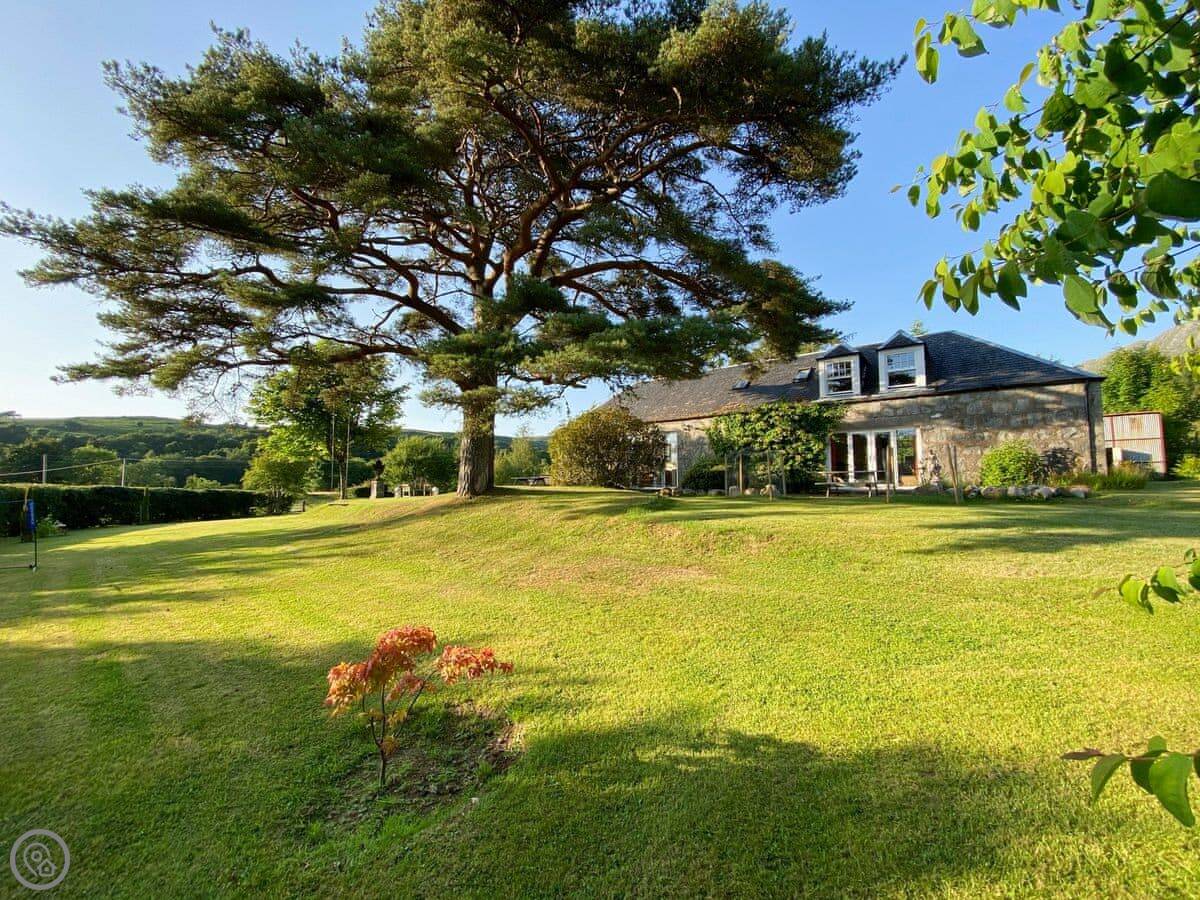 Patio doors lead from the living room onto a terrace at the side of the house, which is a lovely sunspot for enjoying the best of the day’s sunshine and there are seating areas around the garden from which to enjoy the stunning views. There’s plenty of room in the extensive mature enclosed gardens for a family to play and many fantastic walks around the farm to enjoy. Achara Farm is a working farm, so you may see the Farmer coming and going to see to the livestock in the barn and in the fields.