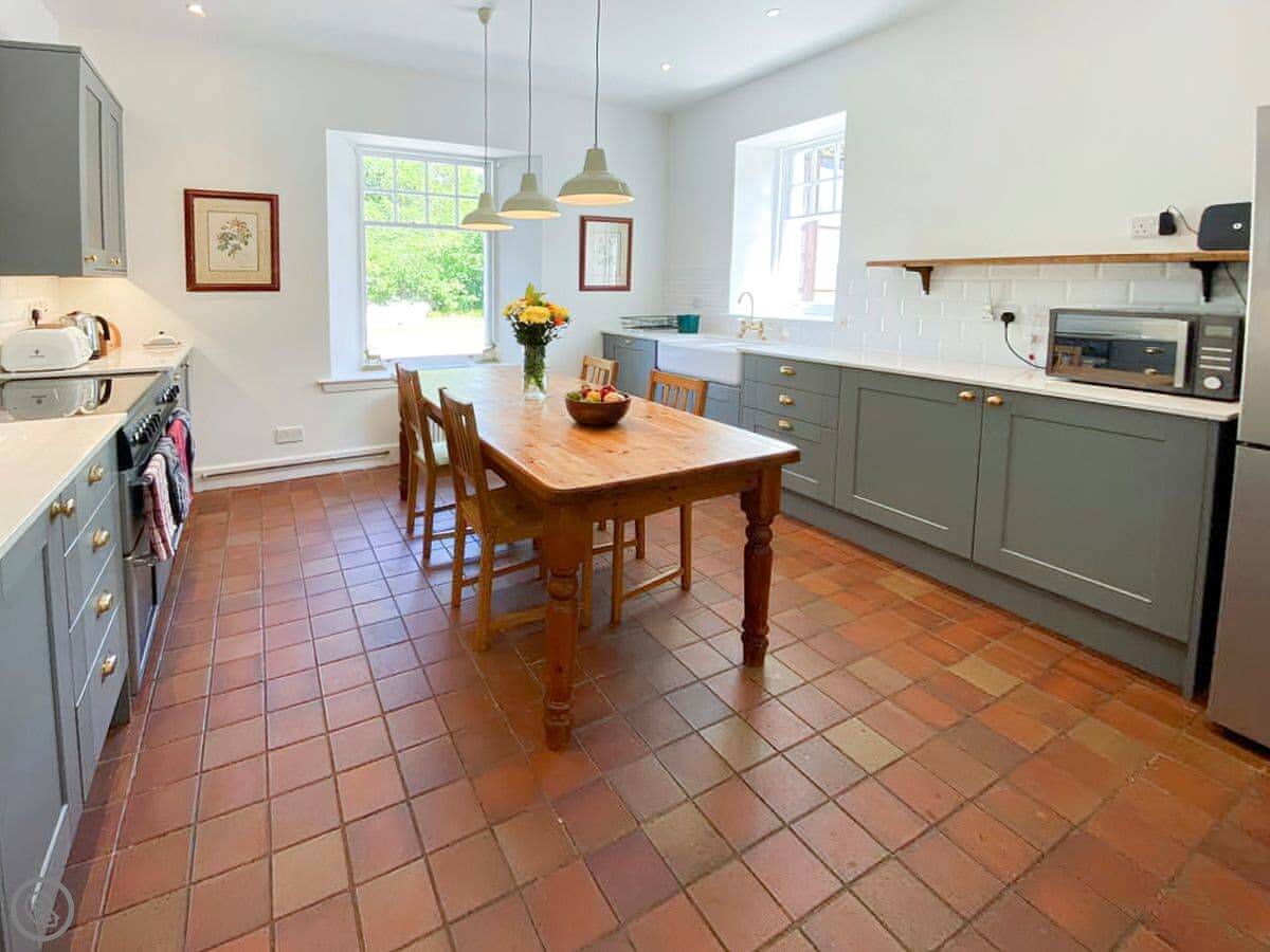 Achara Farmhouse is a beautiful, refurbished home set in its own 24-acre farmlands surrounded by mountains and spectacular scenery. The house can comfortably accommodate a gathering of family, friends, walkers, or cyclists, looking for a peaceful, remote, and beautiful escape with clean air and stunning scenery. There is room for everyone to have their own space yet enjoy time together in the spacious reception rooms and beautiful, extensive enclosed gardens. Cosily heated with oil central heating, complimented by underfloor heating and a welcoming open fire, you’ll feel right at home in Achara Farm. The large open-plan living-room and dining room with an open fire, provides the ideal gathering space for convivial evenings ensuring that you’ll have a relaxing, sociable holiday with the benefit of great connectivity from Wi-Fi and the Smart TV. There’s even a separate cosy “den” with comfy seating and a TV, for those who wish to spend some quiet time in comfort. The four bedrooms sleep eight adults on great quality, comfy beds, with the convenience of 3 bathrooms. The well-equipped kitchen is centred around a big farmhouse table for informal dining, plus there’s a handy utility room too.