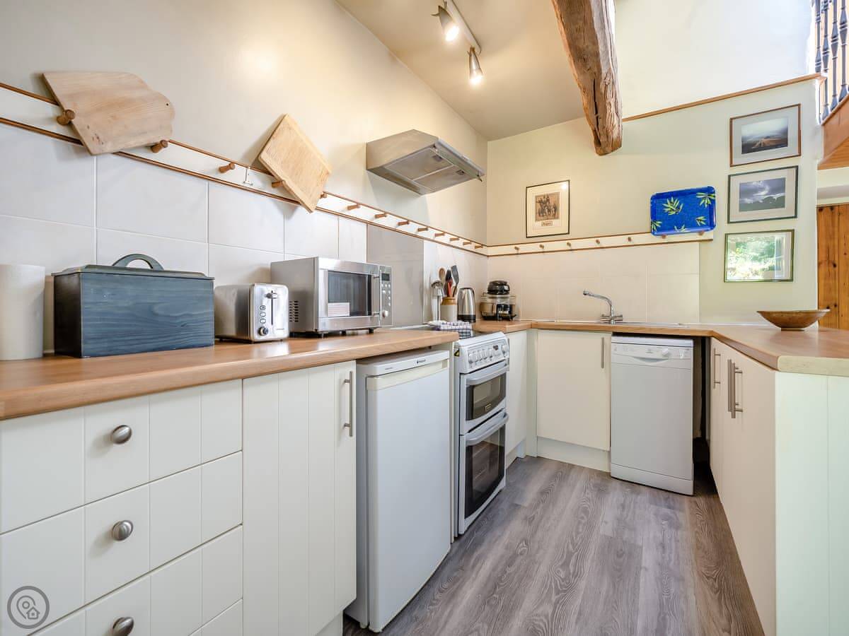 There's a shop and a pub in the village, about a kilometre away. They're both fine. The kitchen has a dishwasher and a washing machine. Bedding and towels are included. There's on-site parking.