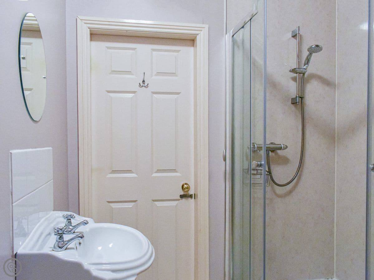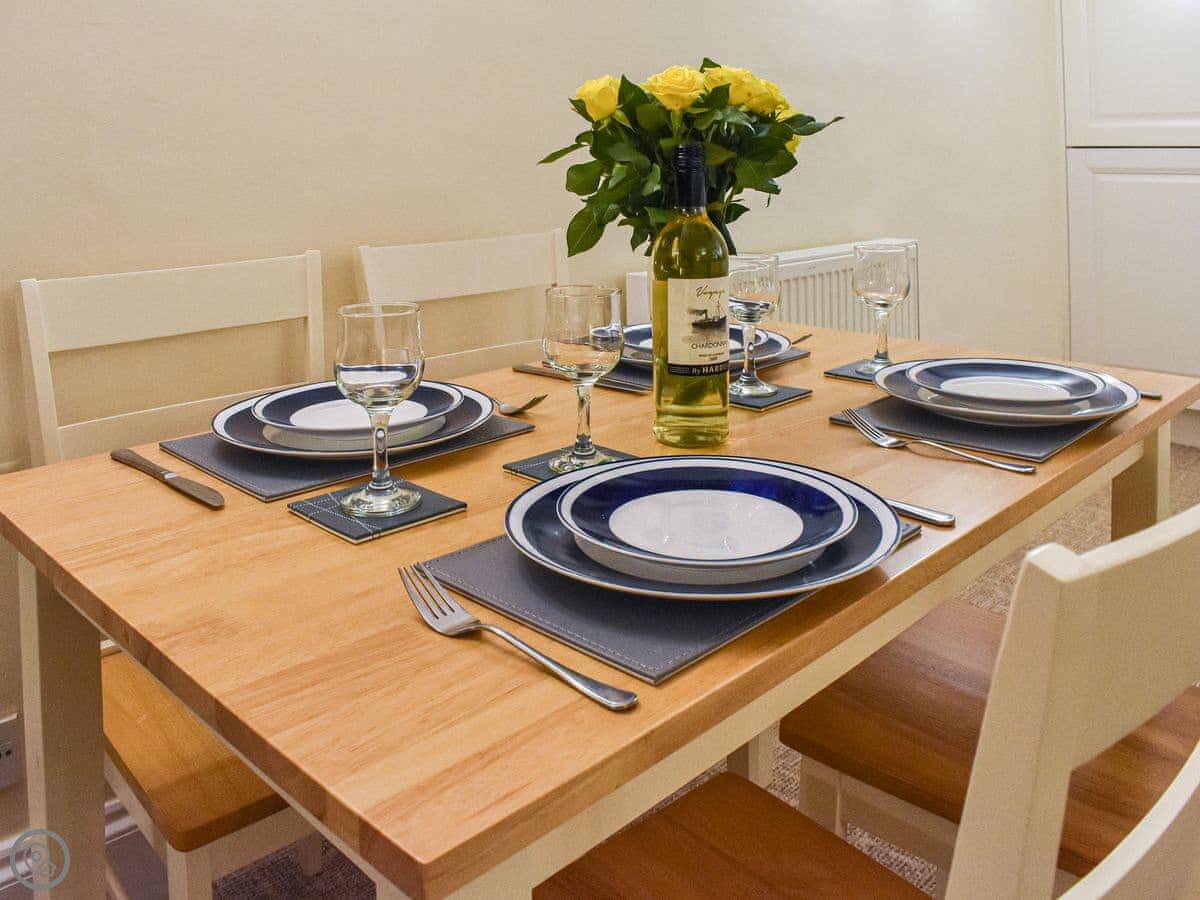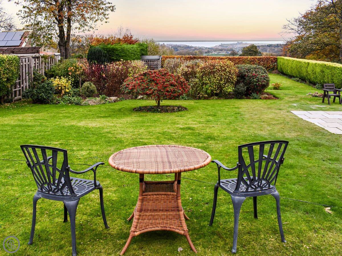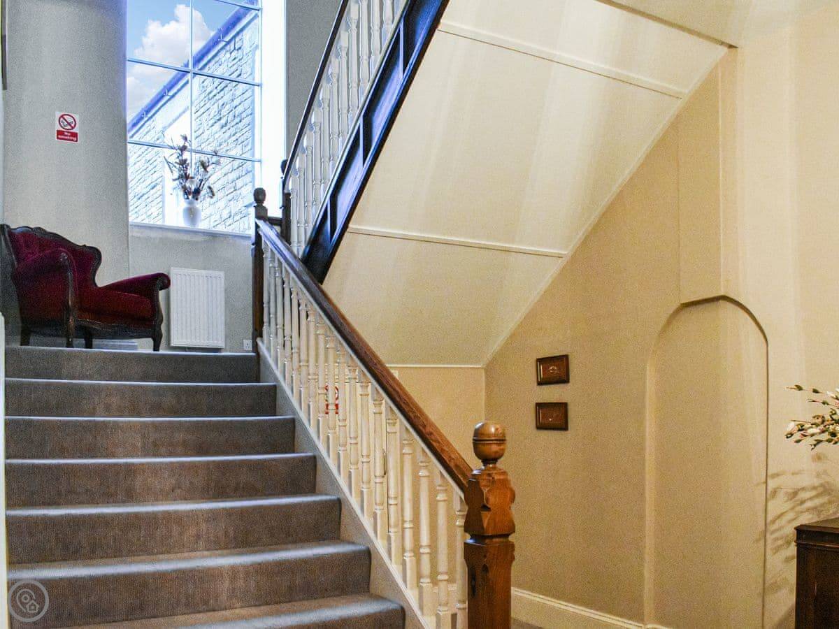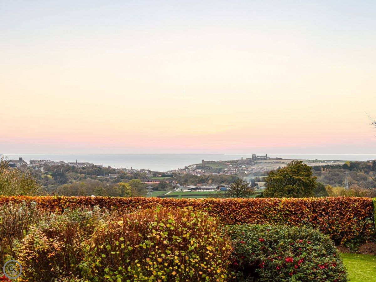 Bailey's Retreat is one of the apartments in Sneaton Hall, which is a big old manor house. It's got its own parking spot out the front. There's a shared garden area with good views over the fields towards the coast.