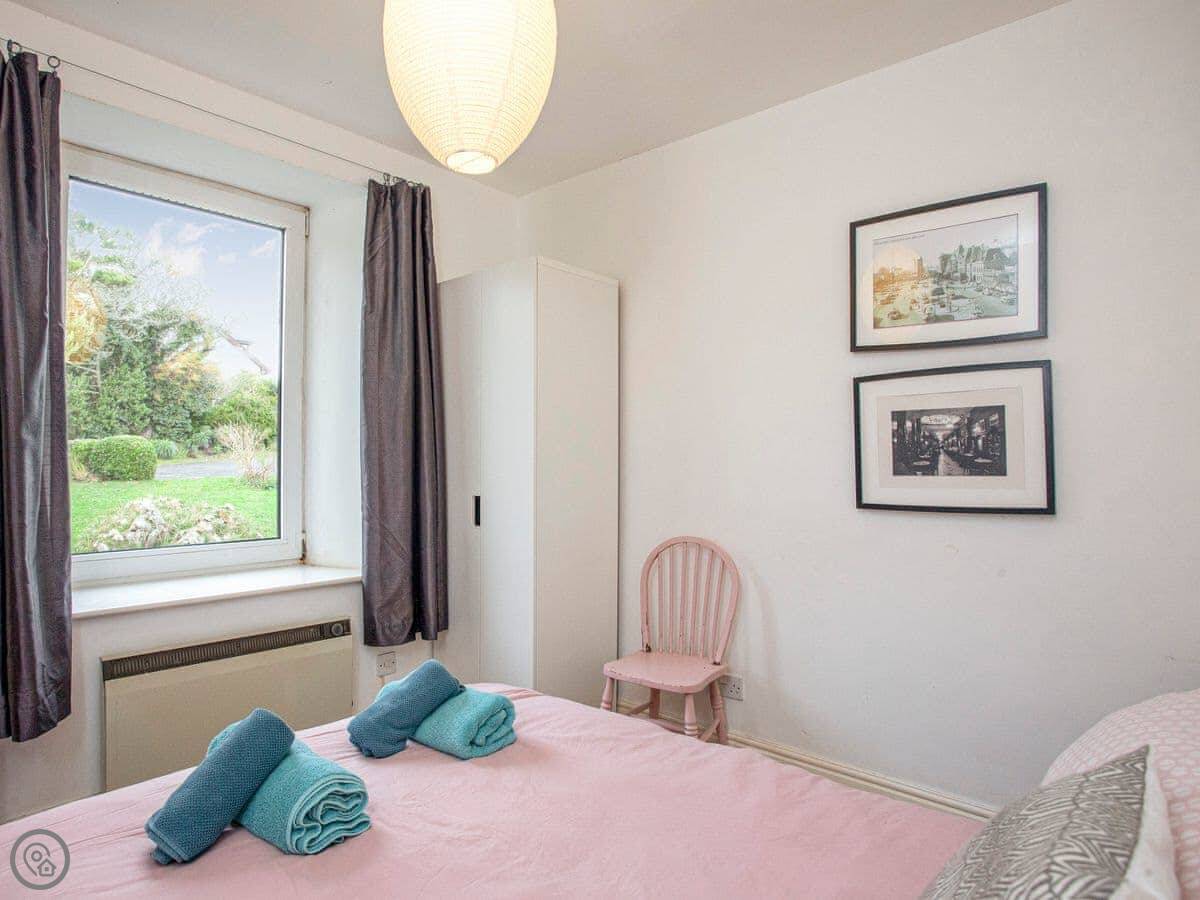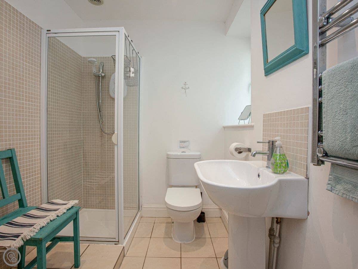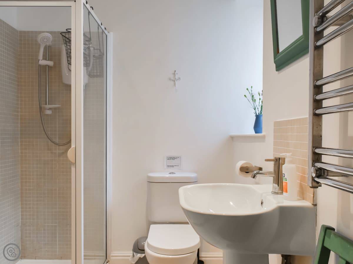 Facilities: there’s parking, WiFi, a TV, a washing machine, bedding and towels are included. There’s a cot and a stairgate if you need them. The entrance and shower are wheelchair accessible.