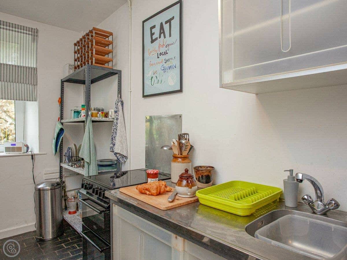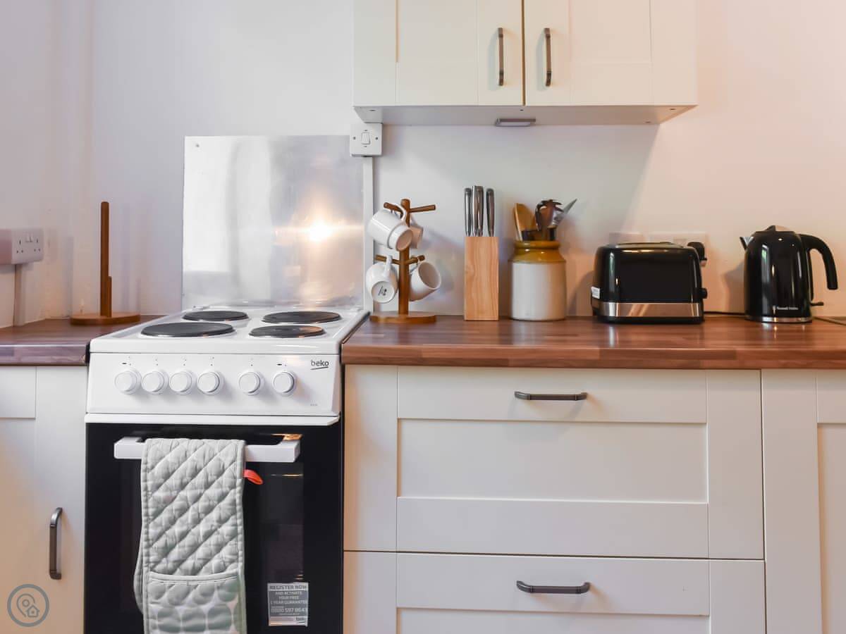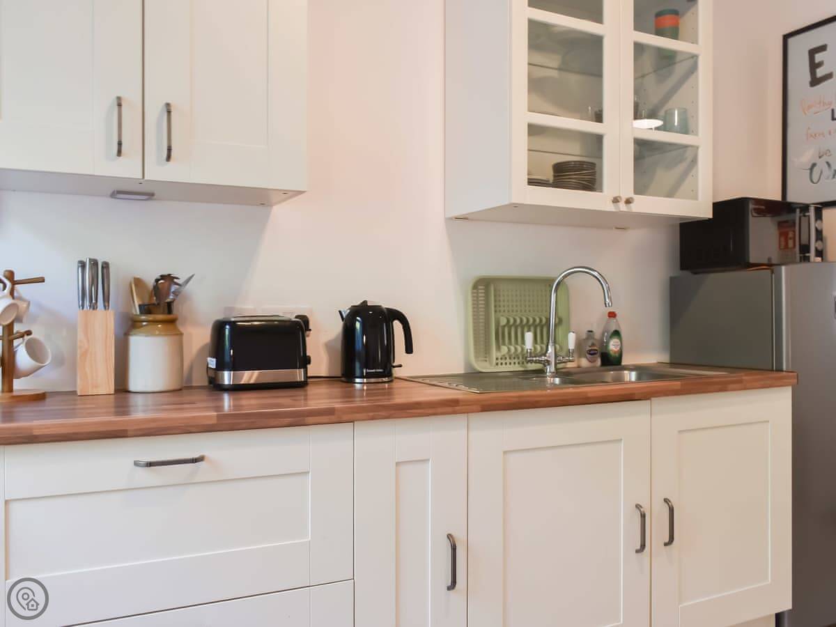 Facilities: there’s parking, WiFi, a TV, a washing machine, bedding and towels are included. There’s a cot and a stairgate if you need them. The entrance and shower are wheelchair accessible.