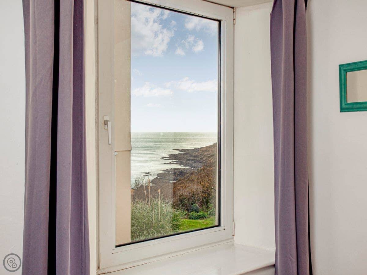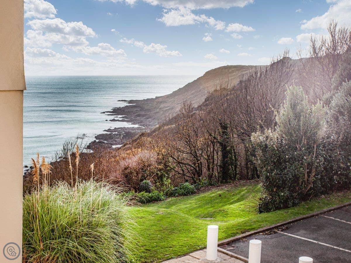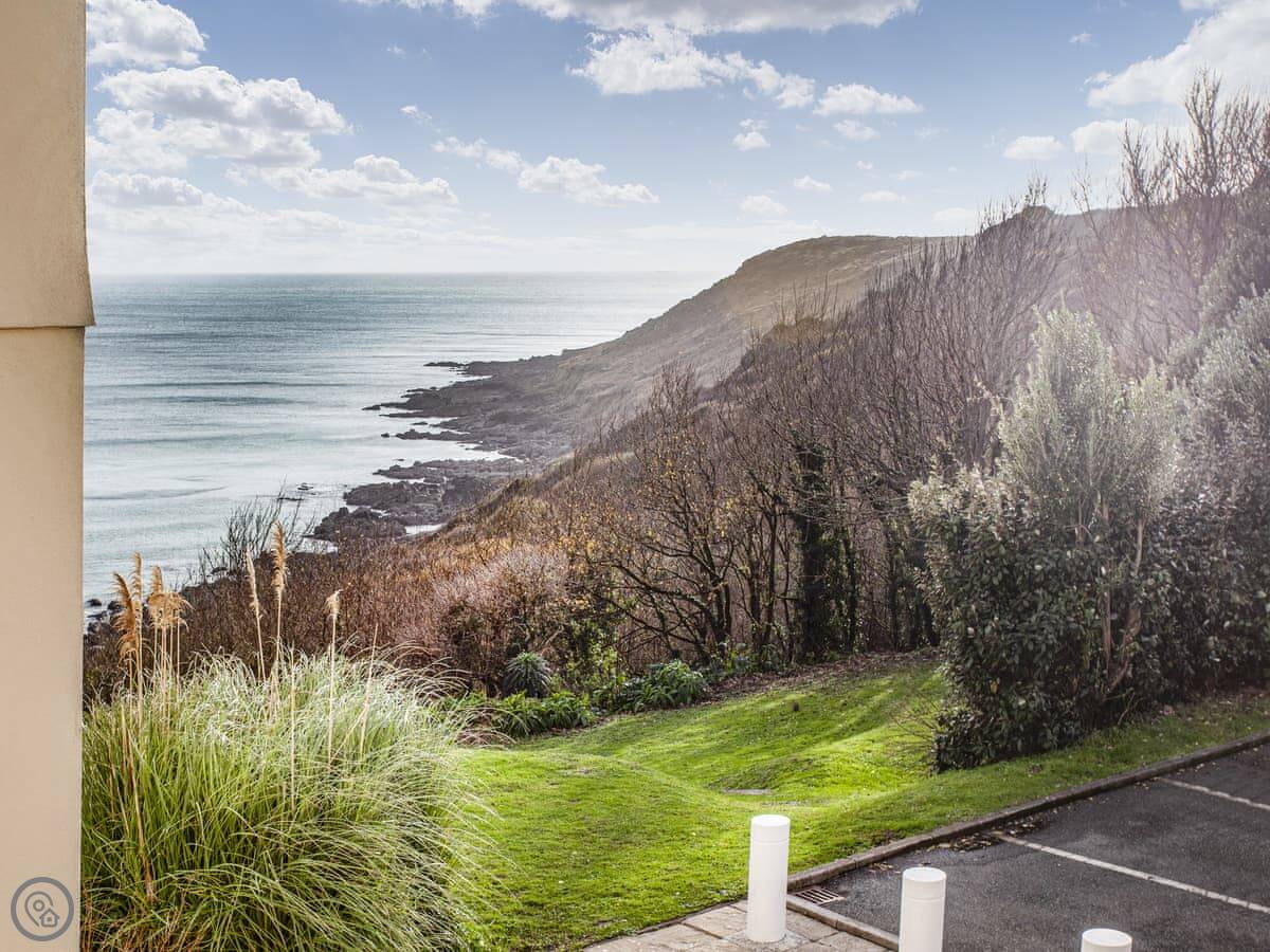 You can walk out the front door, turn right into the shared gardens, and the view from there is fantastic. You can sit on one of the benches. One bedroom looks out towards the headland, the others look over the gardens.