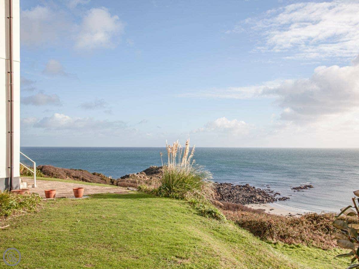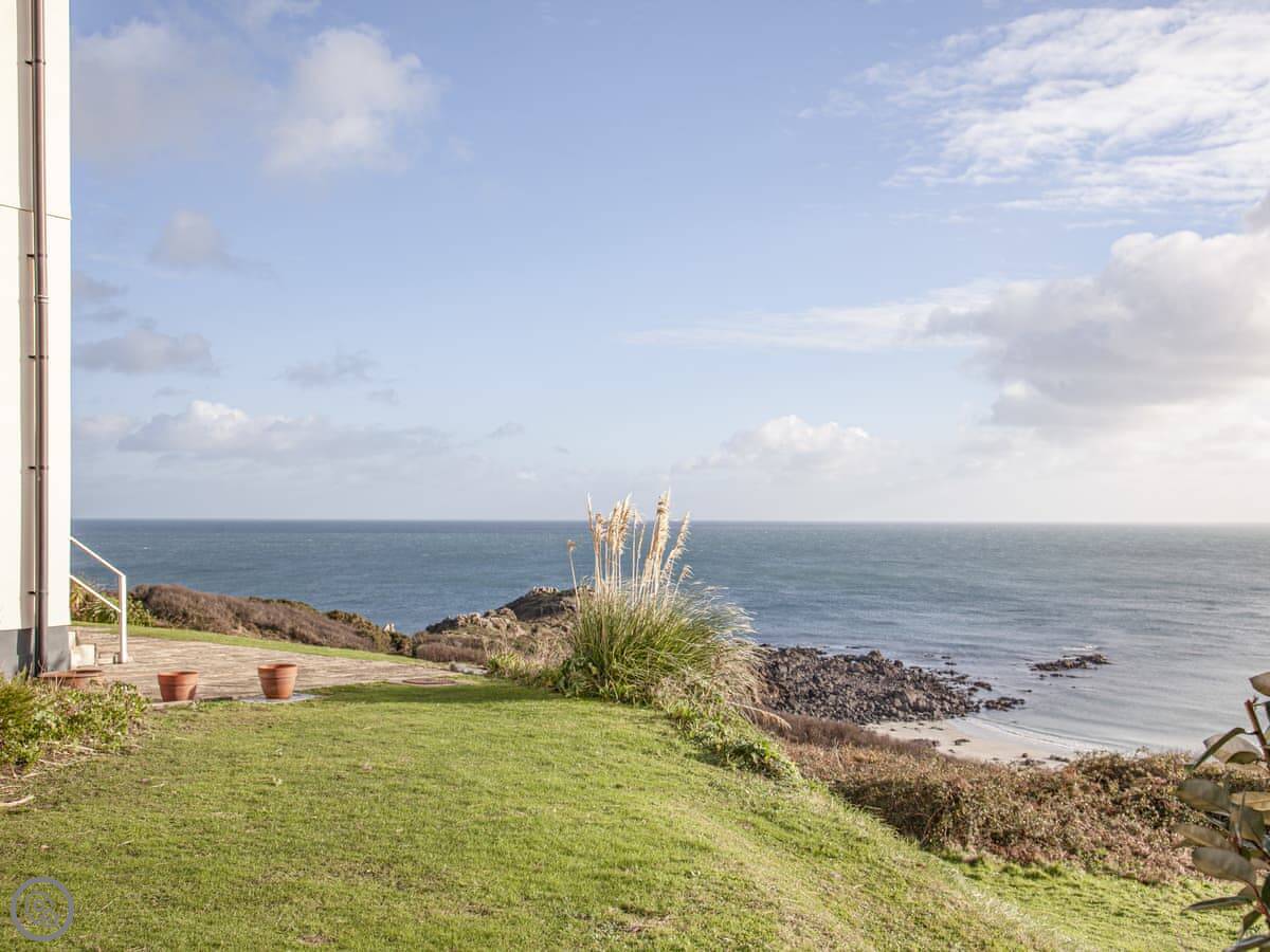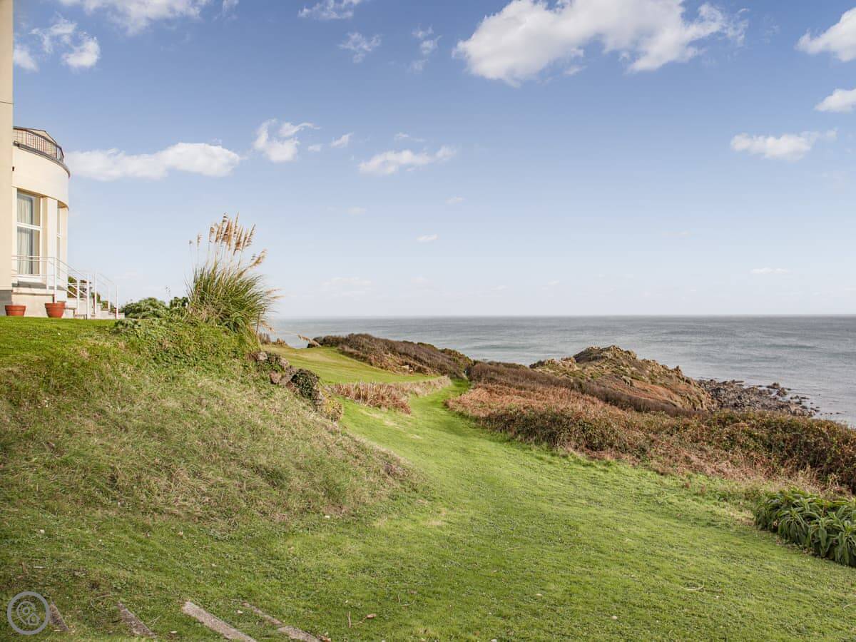 You can walk out the front door, turn right into the shared gardens, and the view from there is fantastic. You can sit on one of the benches. One bedroom looks out towards the headland, the others look over the gardens.
