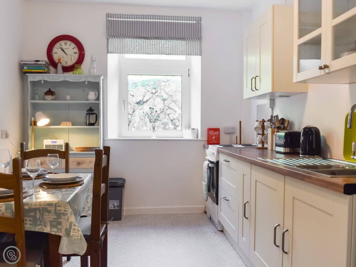 It’s a two-minute walk to get onto the Coastal Path. Mears Beach is about an eight-minute walk downhill. The village and harbour are a short stroll down the headland. There’s a shop, a pub, a couple of places to eat, and a fish and chip shop.