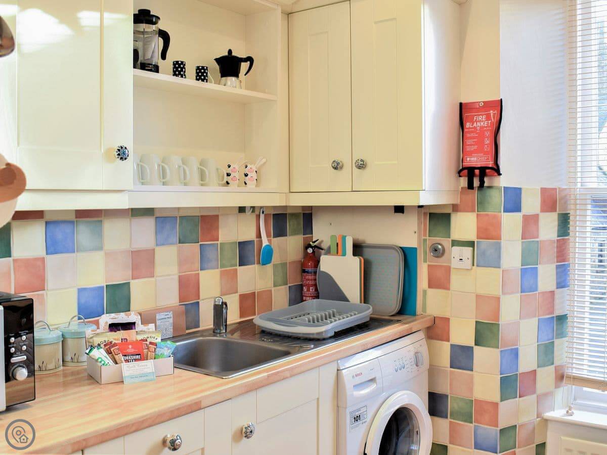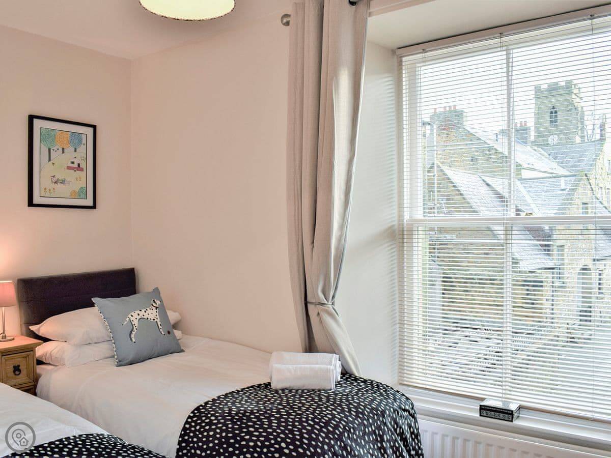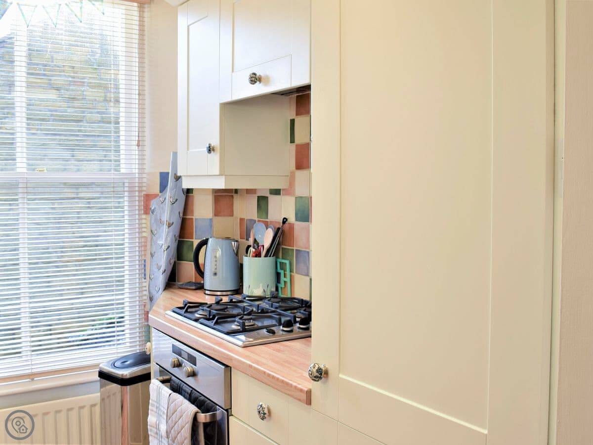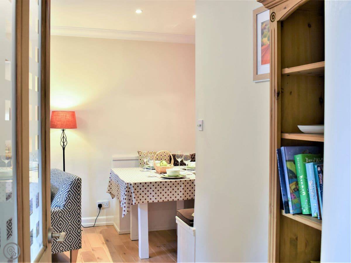Pull up into your allocated parking space – a rare addition for a central apartment. Enter the property through its own front door and make use of the small cloaks space to hang your coats and slip off your boots before heading upstairs. Put your feet up in the cosy lounge and settle in front of the electric stove whilst watching a good film on the Smart TV. The dining nook with comfortable seating for four is a lovely addition. The contemporary kitchen is right next door, bright and airy with a big sash window with a view up the historic alley way, with modern appliances.