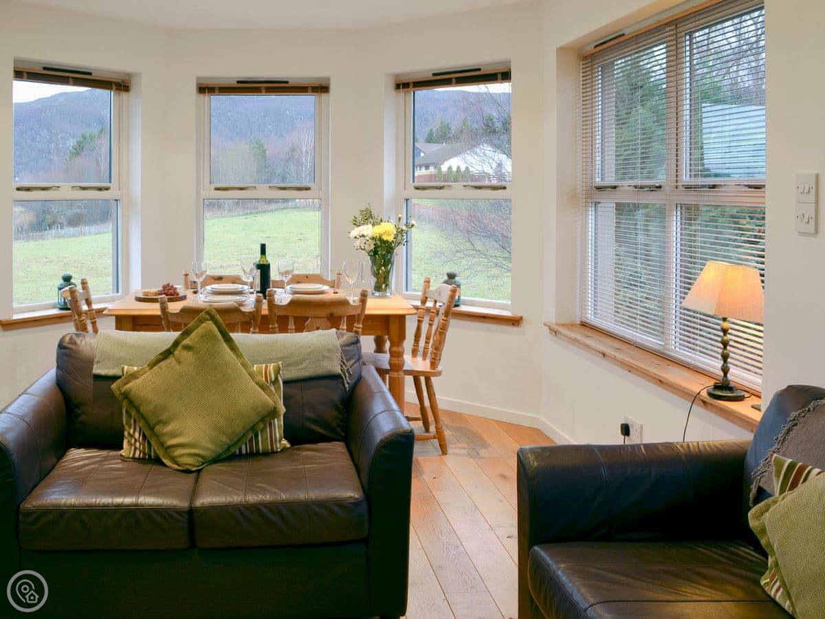 This holiday home is set in a small estate, within the Cairngorm National Park occupying a quiet position just 10 minutes from the heart of Aviemore. Extended to include dining/sun room, it has a south-facing terrace overlooking parkland, heather and birch trees. Superb walking and climbing in the Cairngorm Mountain Range with skiing in season. Fishing and golf locally. Shops, selling all kinds of sports equipment, and pub 500 yards.