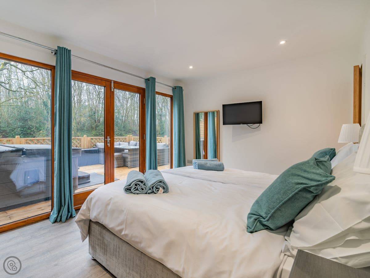 Waterside Lodge Two is on the edge of Ashgrove Country Park, between Elland and Brighouse. It's a wooden lodge set across from a lake. You get your own deck with a hot tub overlooking the water.