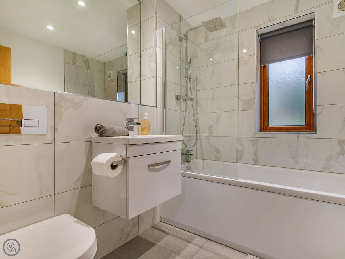 Facilities include all the basics: wifi, TV, washing machine, dishwasher. Bedding and towels are included. There's a cot and highchair if you need them. You can bring up to two dogs. Parking is on site.