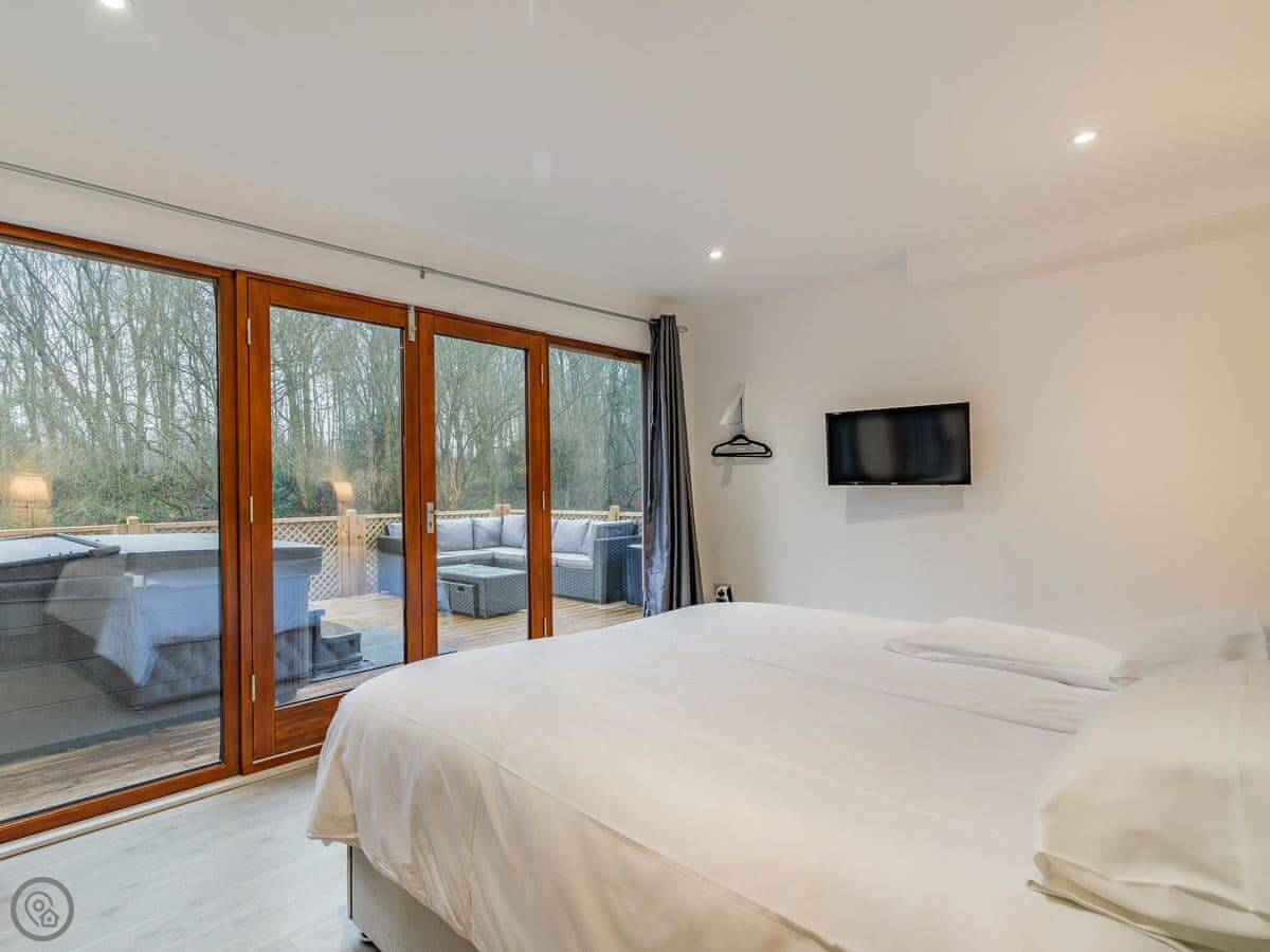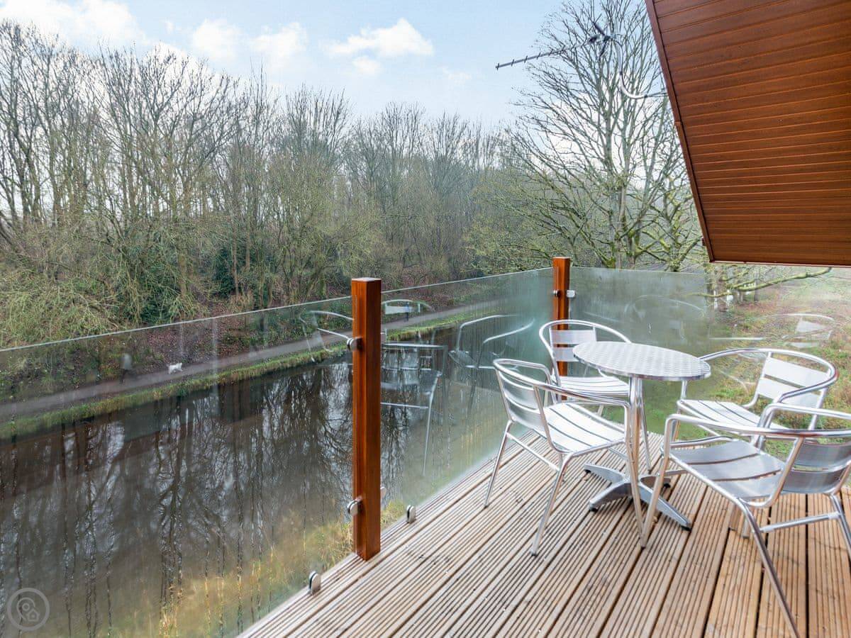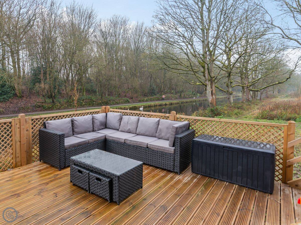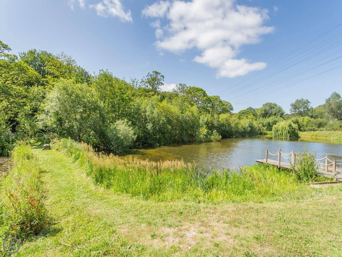 Waterside Lodge Four is in Ashgrove Country Park, near Elland. It's one of several wooden lodges set around a big lake, with woodlands and canals nearby. The whole site is about 40 acres, so it feels quite private.