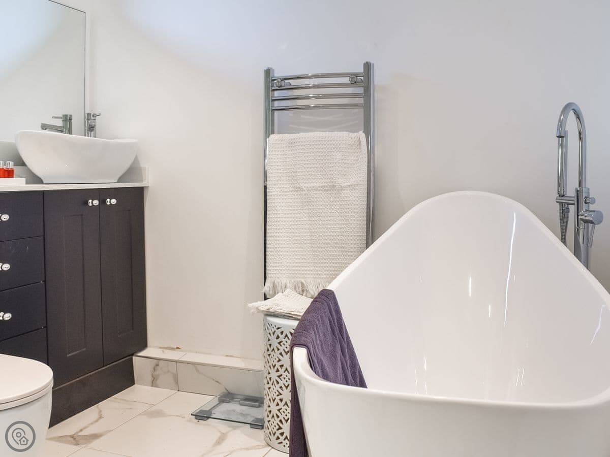 Perfectly situated only 50 yards from the beach, this ground floor holiday apartment is the perfect location for your beachside break. With ample space to leave your cars, bikes, surf and paddle boards, you will be spoilt for a choice of activities. The large kitchen at Marine House has everything you could need for your staycation, from the chilled wine cabinet to the magnificent range cooker. There are two double bedrooms, one with a super king size bed and the other with zip and link beds for flexible sleeping arrangements. The huge bathroom is very opulent, with the most amazing slipper bath and massive walk-in shower, easily one of the best rooms of the apartment! There is also a comfortable living room and a separate dining room to the front of the building with beach views - the perfect place for you to sit and eat dinner after a busy day on the water or exploring all that Sussex has to offer.