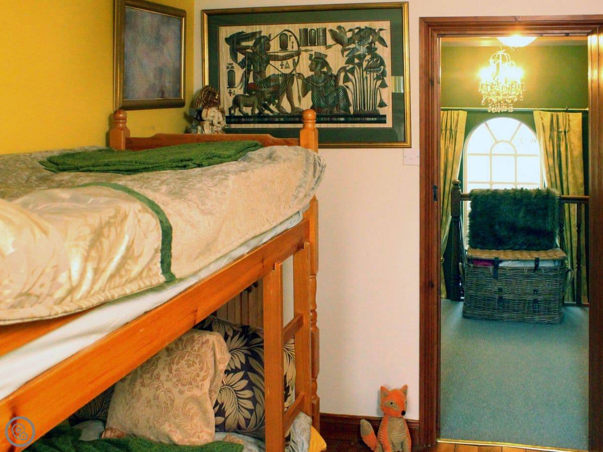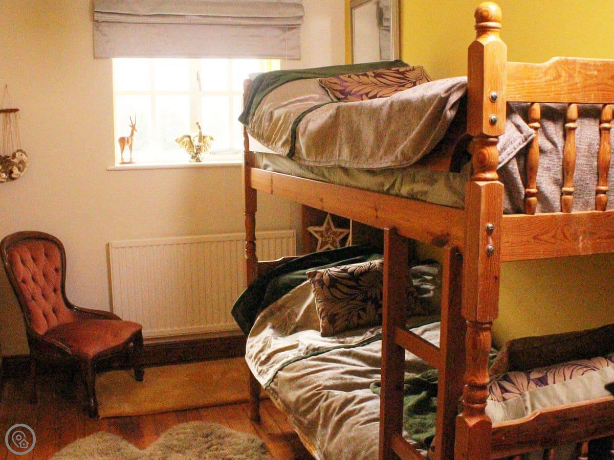 Upstairs, you will find 3 bedrooms, a master suite that has direct access to a private terrace with seating and views of a pretty tree lined church grounds. Two further bedrooms include a double and a twin room with full size single bunk beds, great for kids or teenagers. A family bathroom is also found on the first floor.