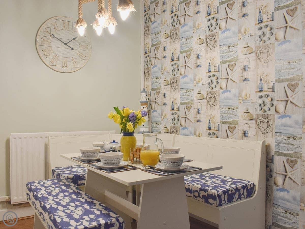 Originally a fisherman’s cottage, you are tucked away from the high street in the village of Loftus, with a small stream running past the front door. The owners have taken great care in completely renovating this property at the beginning of 2022 to provide a high-quality holiday home with everything required to provide a comfortable and enjoyable stay. Inside you have a snug living area, with cosy sofas around the TV.