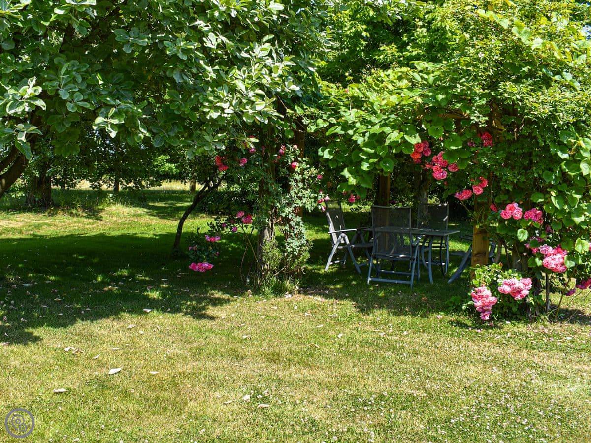 The grounds are shared with the other two cottages here. There's a kids' play area and a games room. You get a private patio area too.