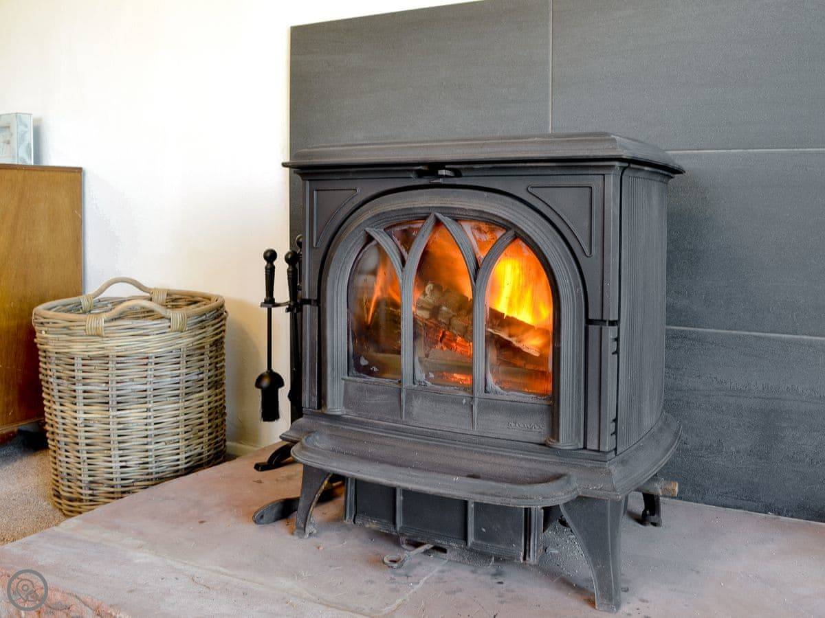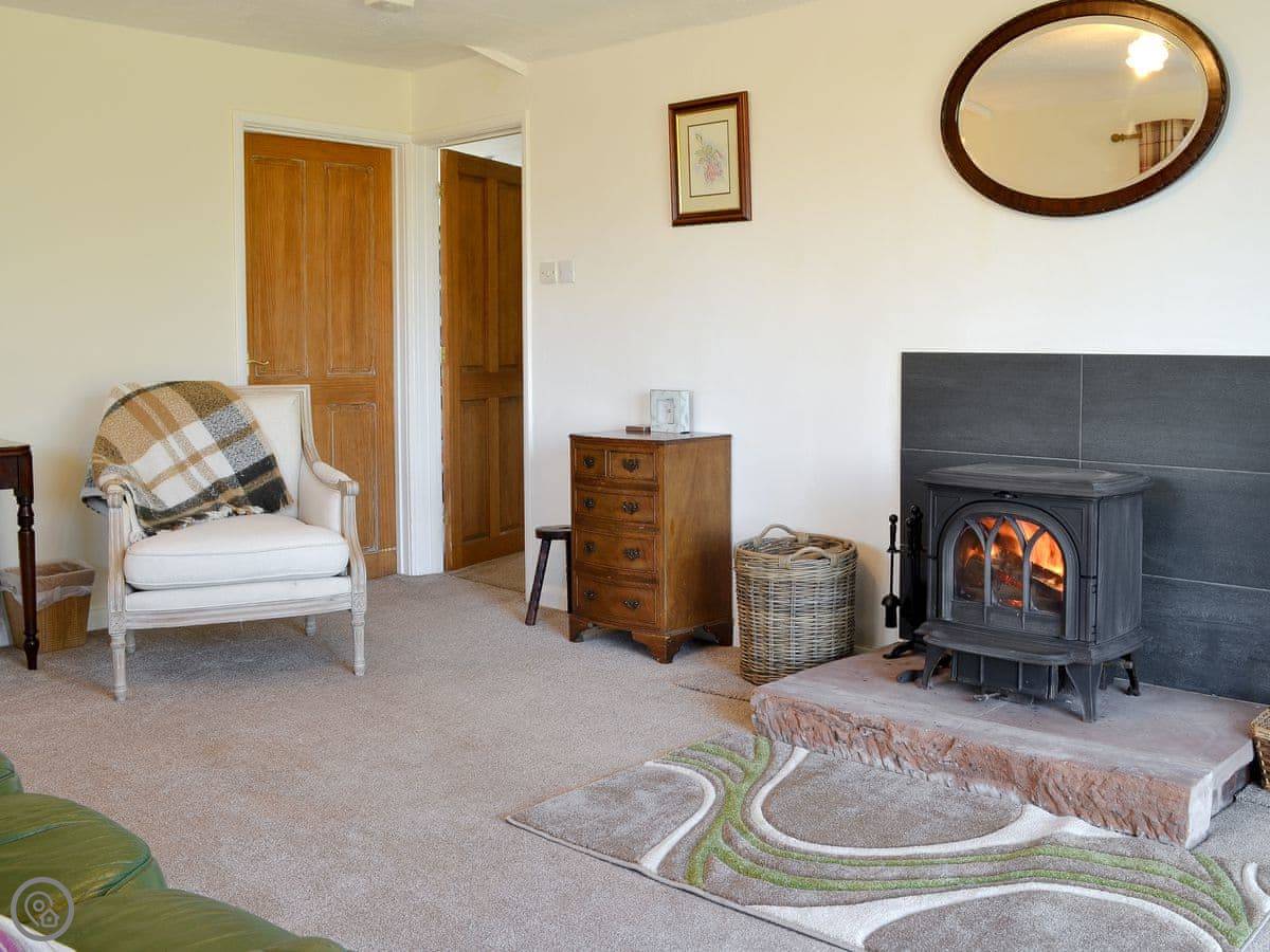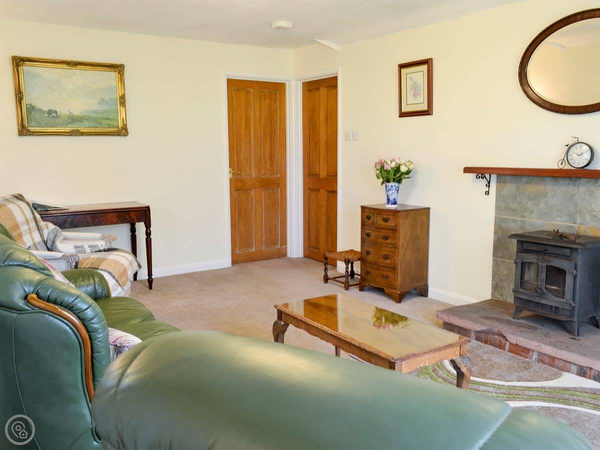 The living room has patio doors that open onto the garden. There's a wood burner for cooler evenings. The kitchen is separate from the dining room.