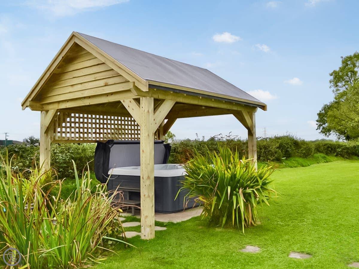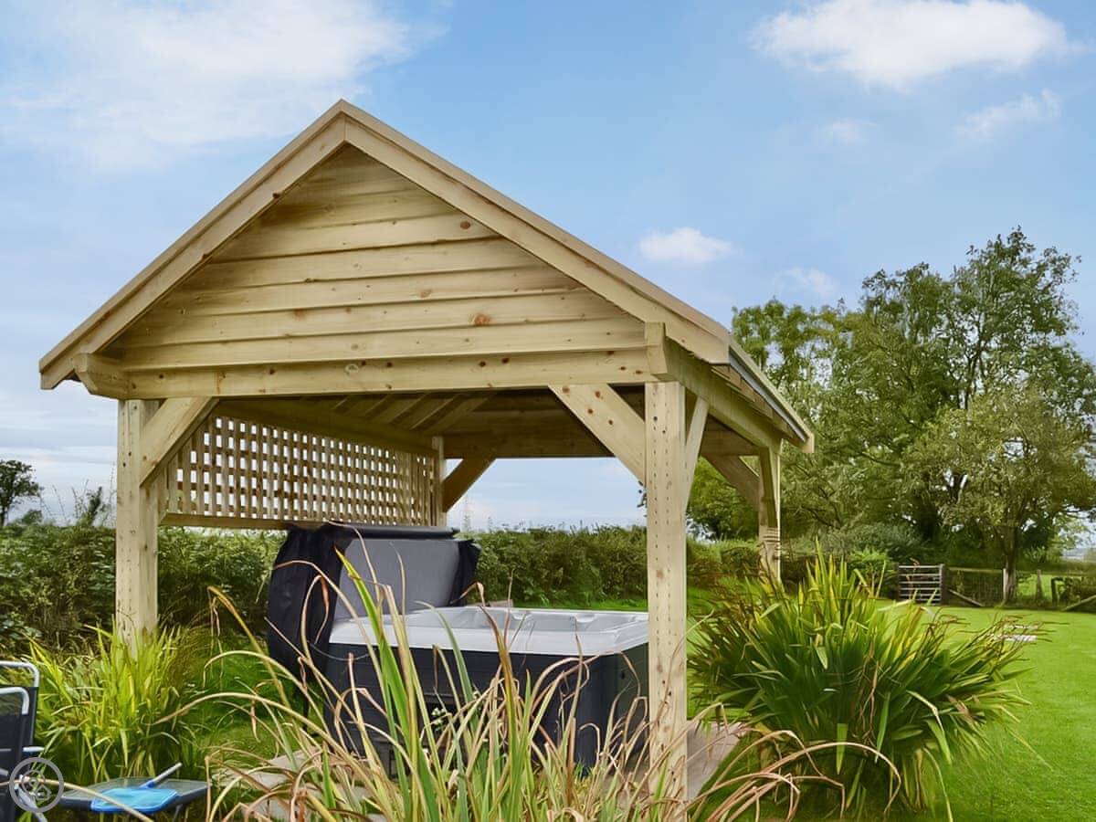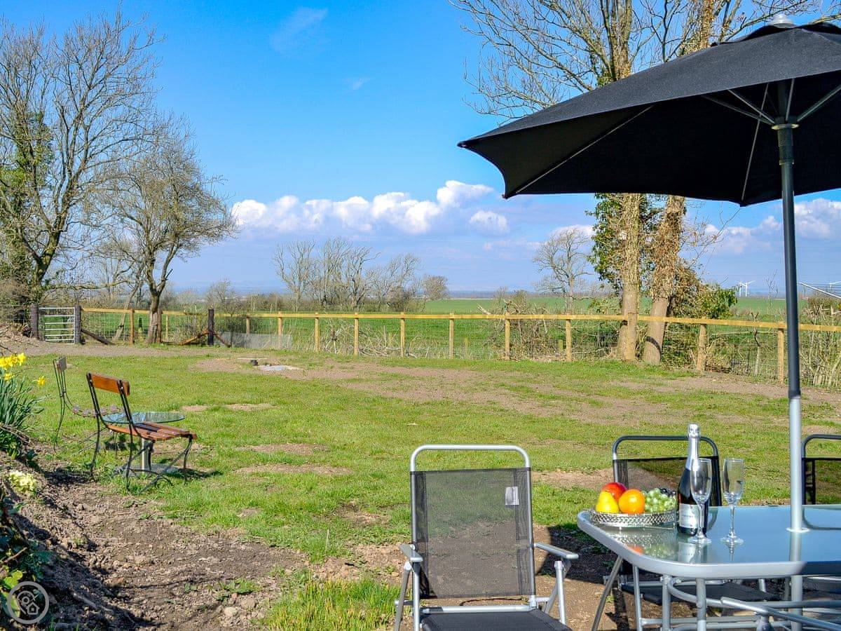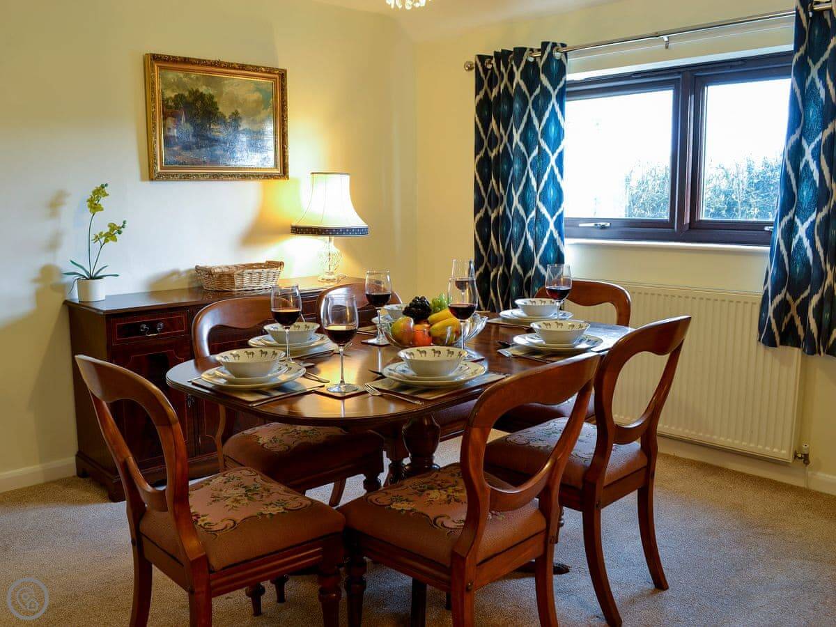 The living room has patio doors that open onto the garden. There's a wood burner for cooler evenings. The kitchen is separate from the dining room.