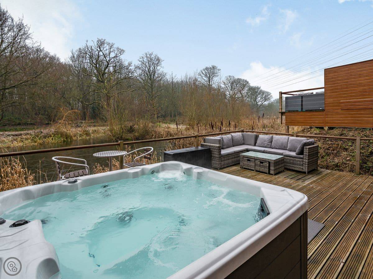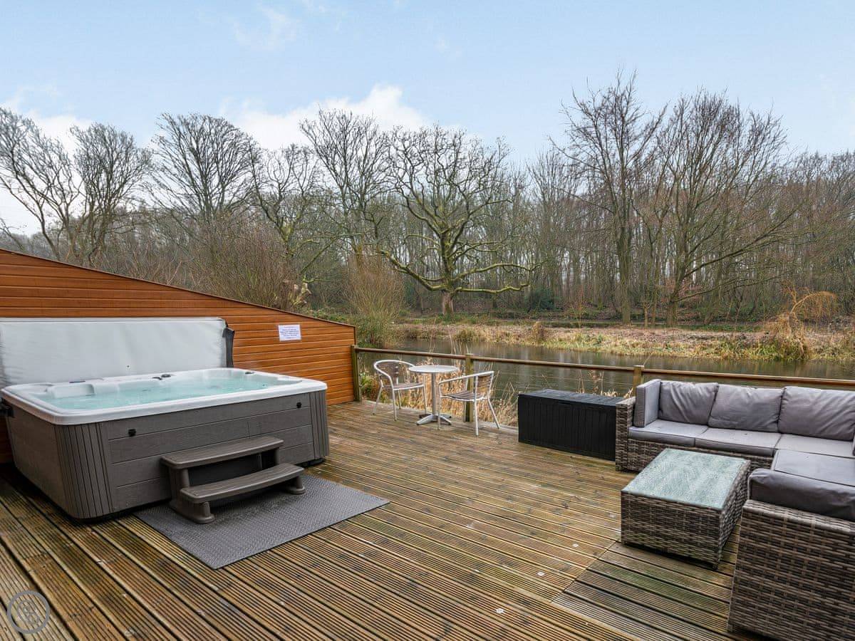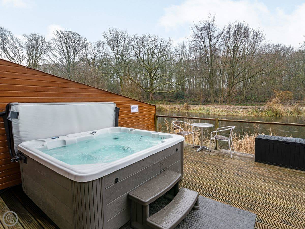 There's a hot tub on the decking. The lodge is semi-detached, so you have neighbours on one side.