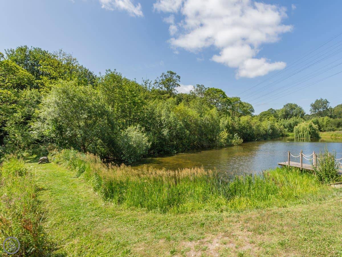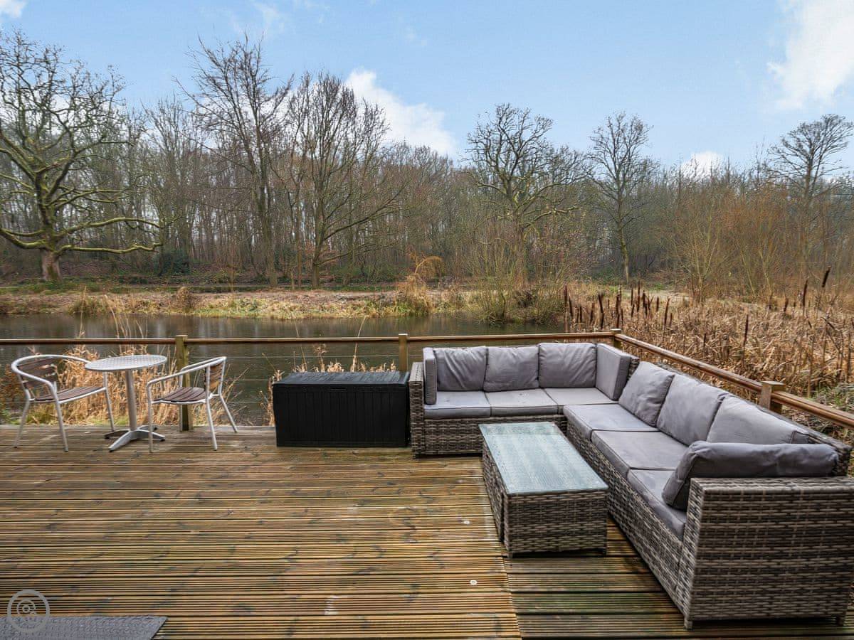Waterside Lodge Fourteen is in Elland in West Yorkshire. It's a wooden holiday lodge in Ashgrove Country Park, by some small lakes and woodland. The park is about 40 acres of old estate grounds.