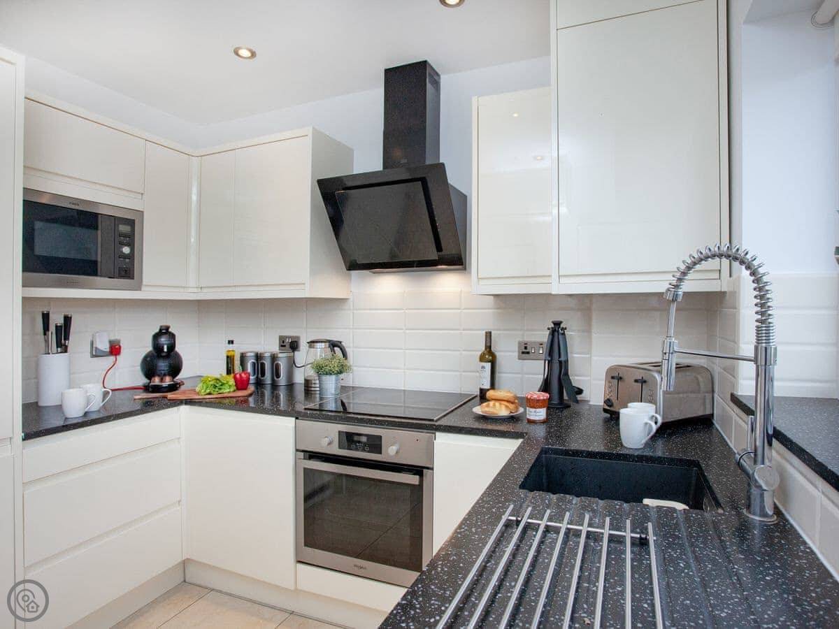 Upon entering this first floor apartment you find yourself in the well-equipped kitchen area, with everything you could need to rustle up a great meal. The modern shower room is just along the hallway as are the two double bedrooms. The living space here is bright and airy thanks to the bay window at the front of the room, with sofa seating as well as dining table and chairs.