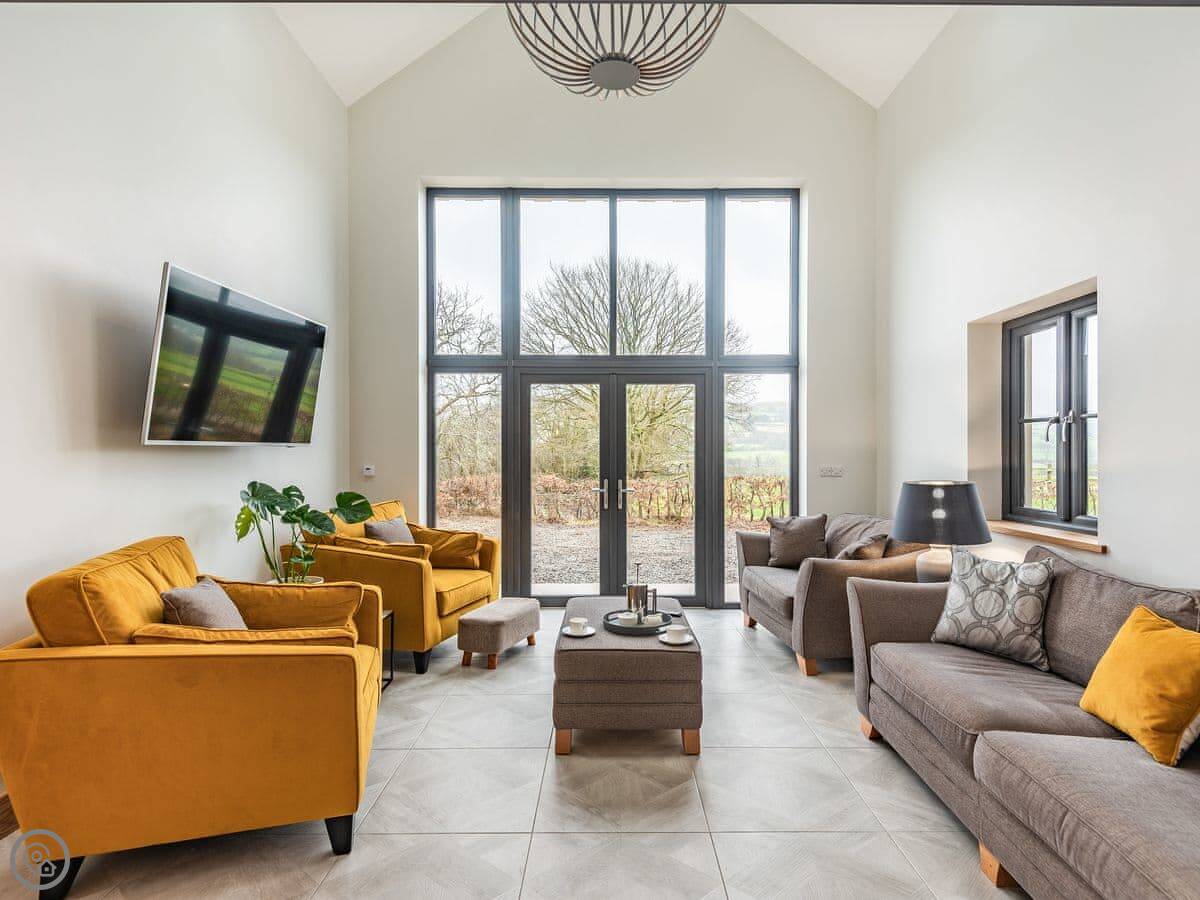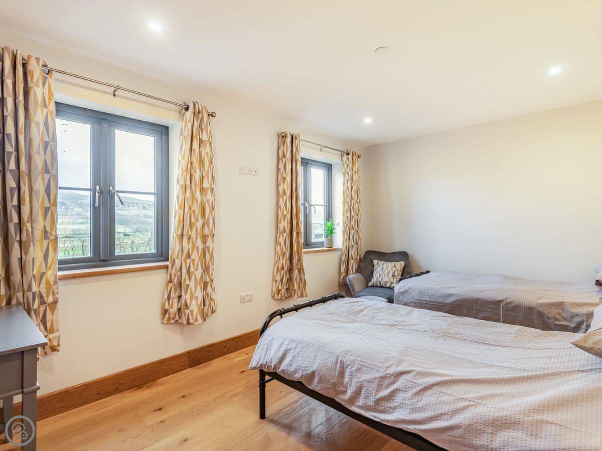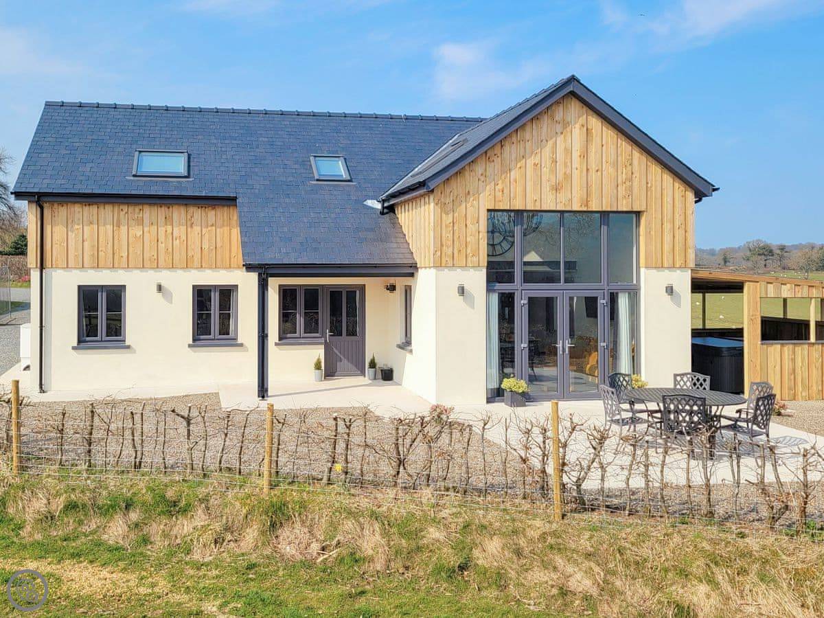 Right, Red Kite Lodge. It's a new build, finished in 2020. It's detached, on our smallholding here at Stags Head. Sleeps seven across four bedrooms, and there are three bathrooms, which helps with a full house.