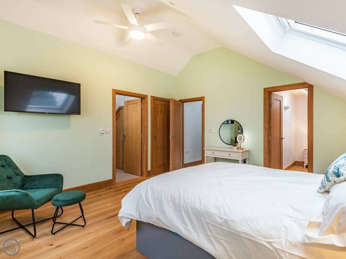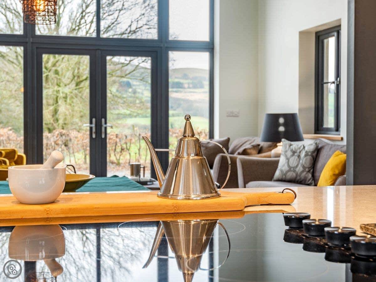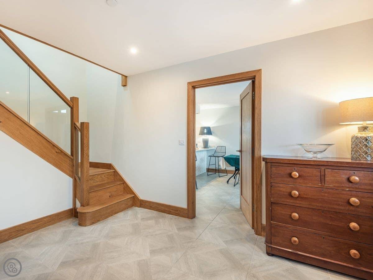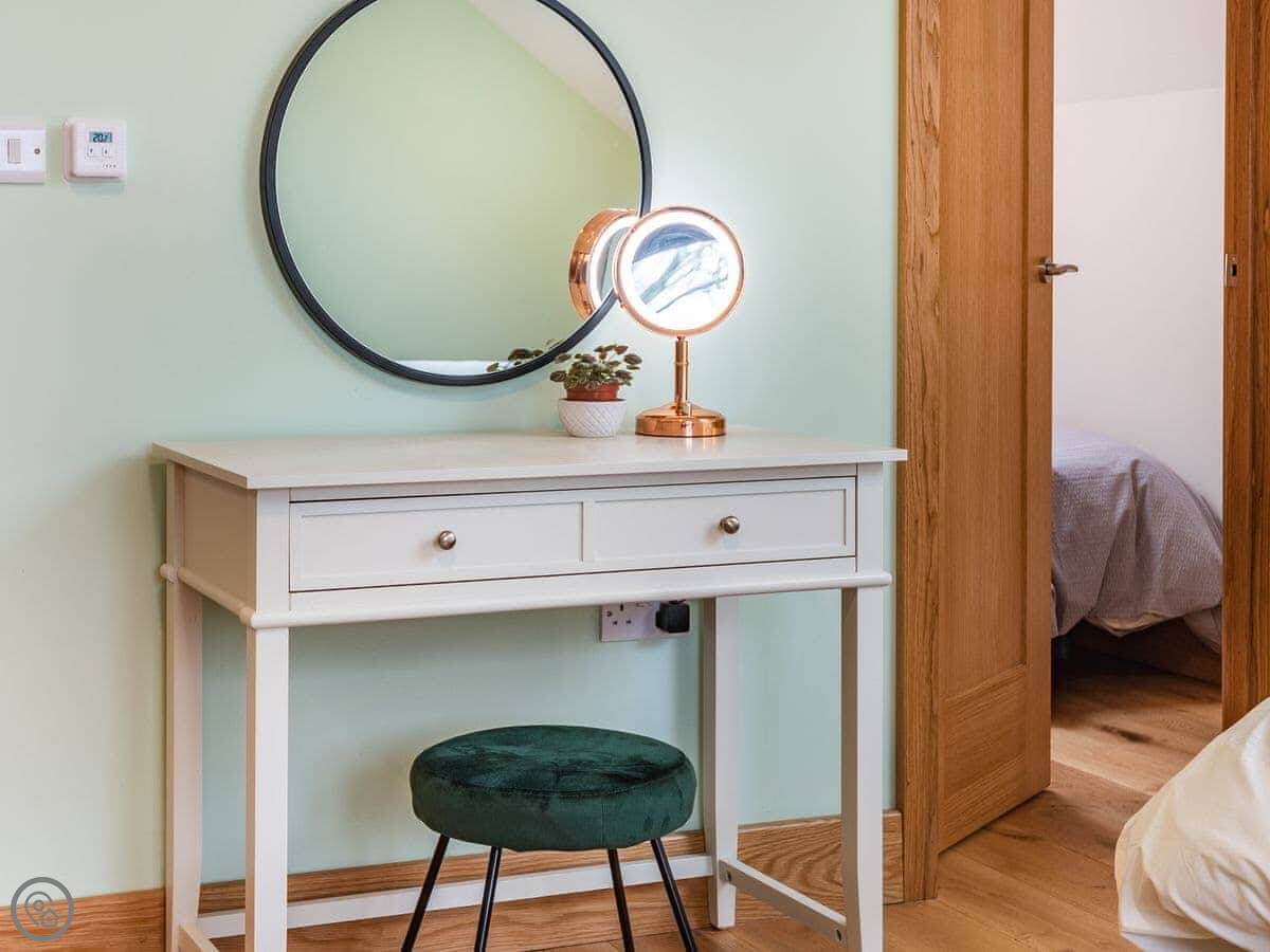 It's a five star rated place, so it's well-equipped. Underfloor heating, dishwasher, washing machine, WiFi, that sort of thing. Bedding and towels are included. You can bring one dog. We can also sort a travel cot and highchair if you need them.
