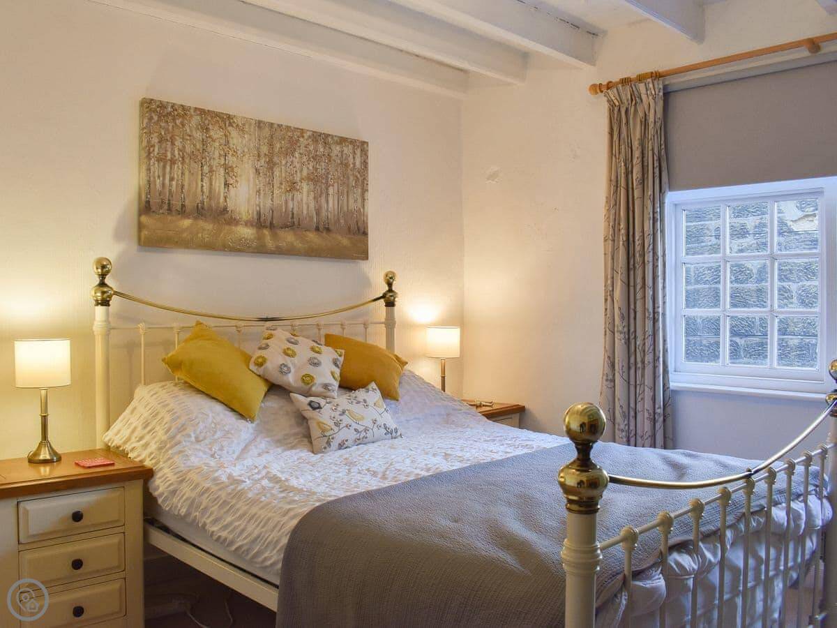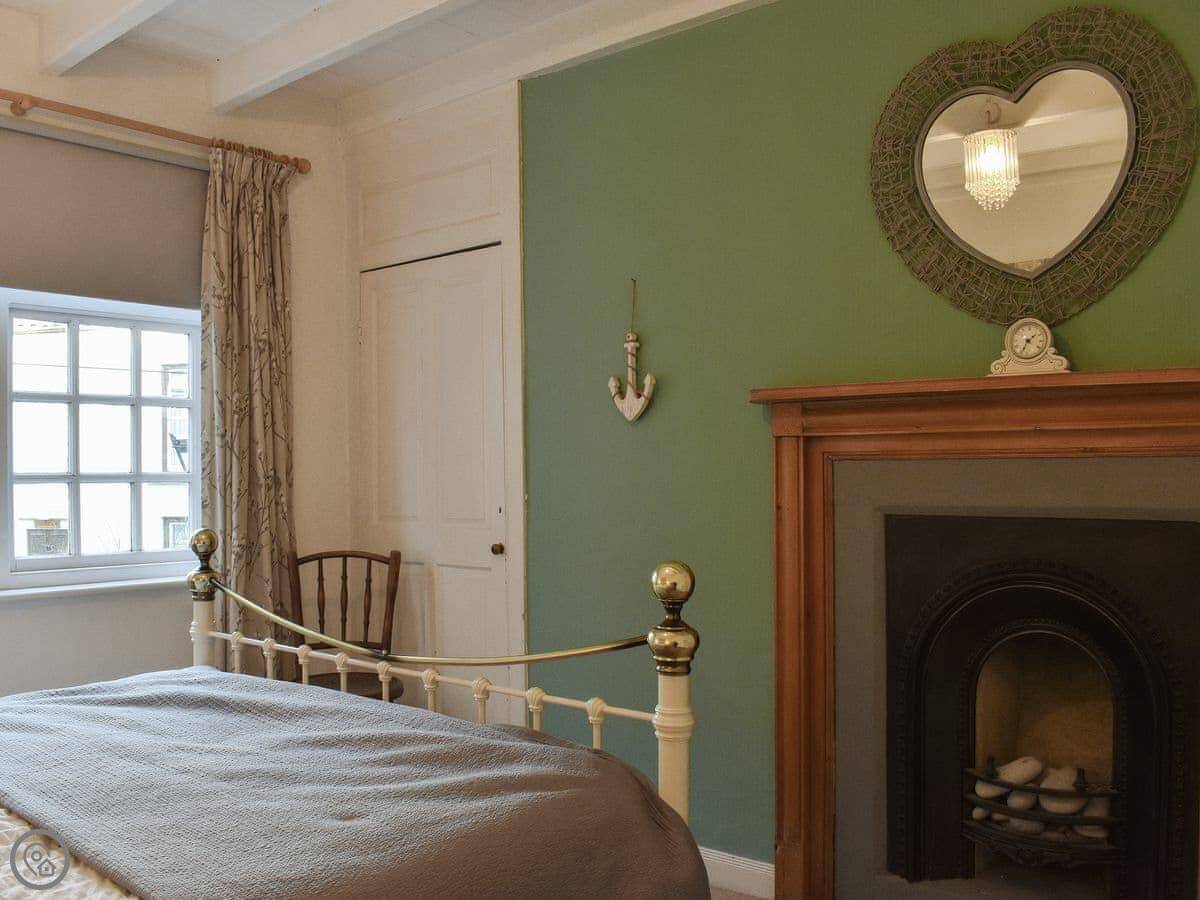 One bedroom has a king bed. The other is up another flight of stairs and has a double and a single bed under the eaves. You can see the sea from there.