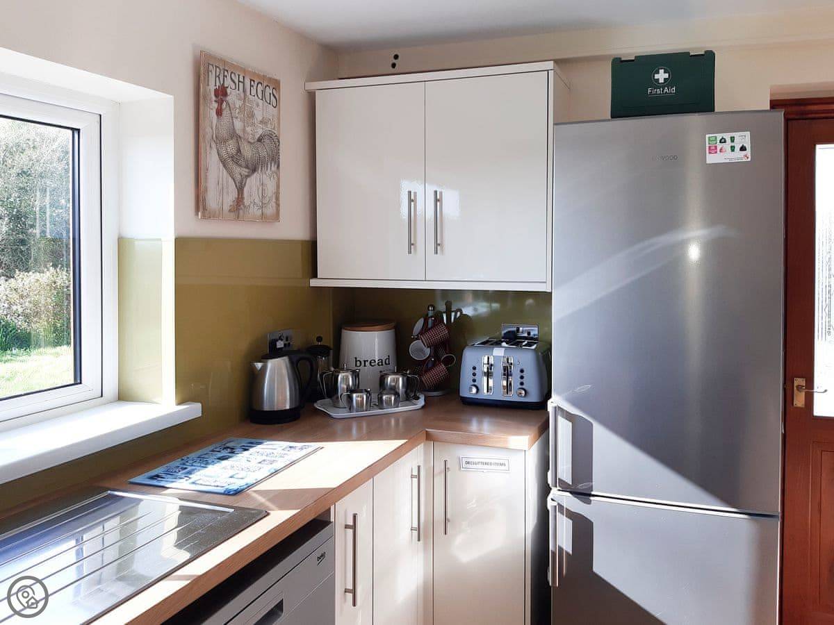 It sleeps eight people. Four bedrooms, two bathrooms. One of the bathrooms is a wet room on the ground floor. It's got a 4 Star rating. It's comfortable and well-equipped, not just a basic place.