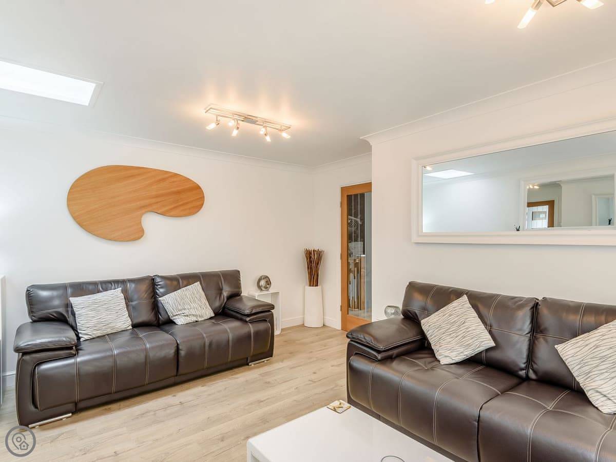 Step inside this unique upside-down property where you will find two spacious double bedrooms, one on the upper floor, one on the lower, coupled with an en-suite shower room and a further bathroom with bath and shower cubicle. Continuing through the property onto the upper level, discover a fully fitted kitchen with breakfast bar, a lovely separate dining room, tastefully decorated lounge with French doors leading into the light, airy conservatory and further French doors leading outside. Behold a magnificent, bespoke private garden with an undercover dining area, outdoor social seating and a relaxing water feature, enveloped by lush greenery. To the front there is ample, hard-standing parking for three vehicles.