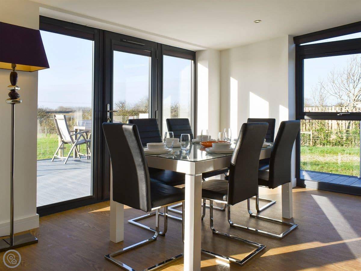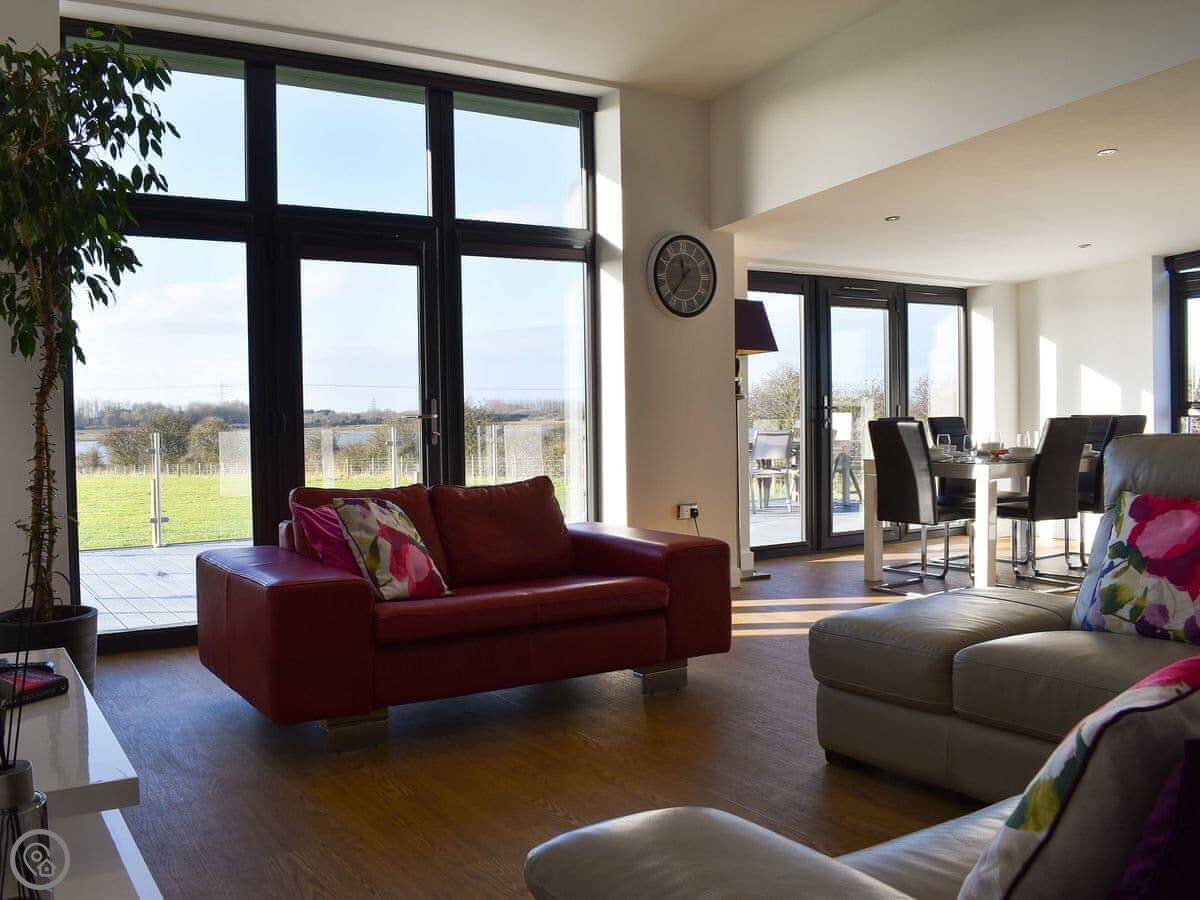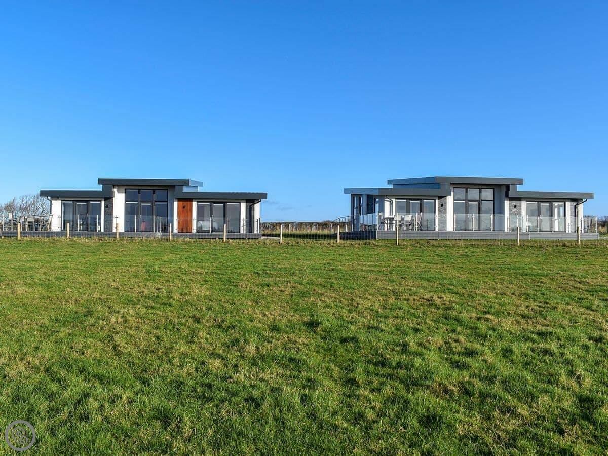 Located on the outskirts of the Lancashire village of Hambleton, these two superb holiday chalets offer modern and purpose-built luxury accommodation overlooking the peaceful and tidal River Wyre. Perfect for couples, families and friends alike, they were built in 2021 and are impressive from the moment you arrive. Great thought and consideration have gone into the design of the accommodation to ensure guest satisfaction throughout, and includes modern day conveniences such as underfloor heating, motorised electric blinds, smart TVs, wireless charging and electric vehicle charging points. The living space is open plan and sociable by design, boasting floor to ceiling windows and opens out onto a large, decked area with simply spectacular views. Offering a rare and relaxing holiday experience the chalets are located on a quiet country lane and surrounded by a ten-acre field. Dependent on the tide there’s the potential to watch sail and speed boats, and local wildlife is plentiful with deer, hares, swans and geese frequenting the site. Ample walking and cycling are available direct from the door, and finally the unobscured views of the sunsets are simply stunning.